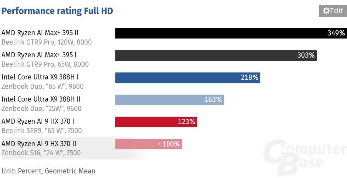Một trong những điểm yếu cố hữu của iGPU là sự sụt giảm hiệu năng nghiêm trọng khi bị giới hạn mức công suất (TDP) thấp để tiết kiệm pin. Tuy nhiên, Arc B390 trên Core Ultra X9 388H đã phá vỡ quy luật này. Thử nghiệm từ ComputerBase chỉ ra rằng ở mức 25W, Arc B390 nhanh hơn tới 63% so với Radeon 890M của AMD.