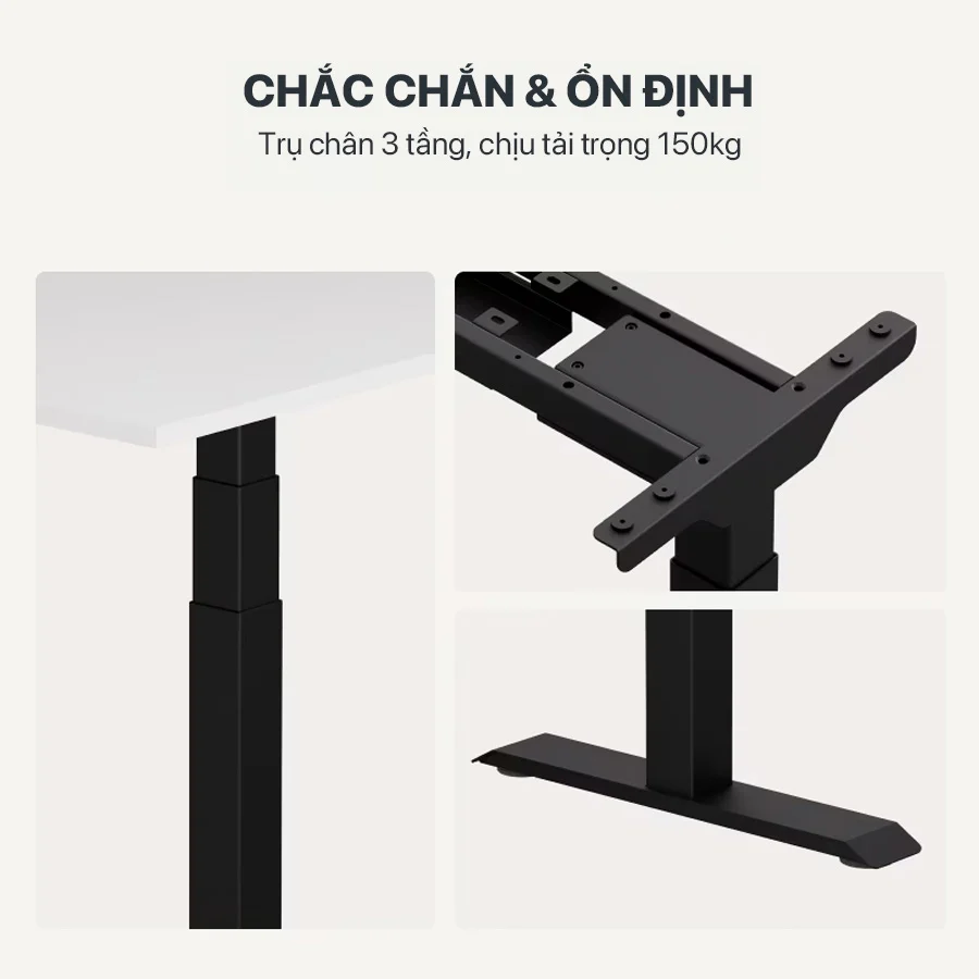 Hệ Thống Nâng Hạ 3 Động Cơ Mạnh Mẽ và Siêu Tốc: Được trang bị 3 động cơ (3 Motor) thay vì 2 motor thông thường, và cấu trúc 3 đoạn trục chân (3 Stages), E7T cho khả năng nâng hạ vô cùng mạnh mẽ, ổn định và mượt mà. Tốc độ điều chỉnh ấn tượng lên đến 3.8cm/giây giúp bạn chuyển đổi tư thế từ ngồi sang đứng và ngược lại một cách nhanh chóng chưa từng có, đồng thời vẫn duy trì độ ồn dưới 50dB, đảm bảo không gian làm việc luôn yên tĩnh.