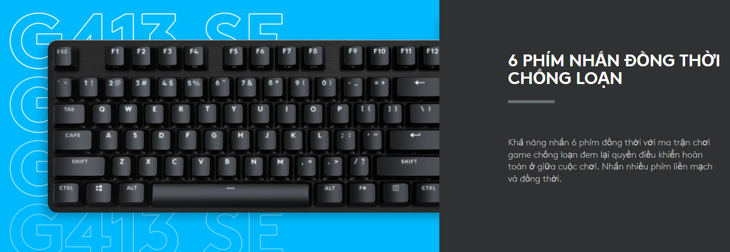 Với khả năng nhấn cùng lúc 6 phím và tính năng Anti-ghosting, G413 SE đảm bảo mọi tổ hợp phím bạn nhấn đều được ghi nhận chính xác hoàn toàn. Bạn có thể thực hiện các combo chiêu thức phức tạp mà không lo bị sót lệnh.