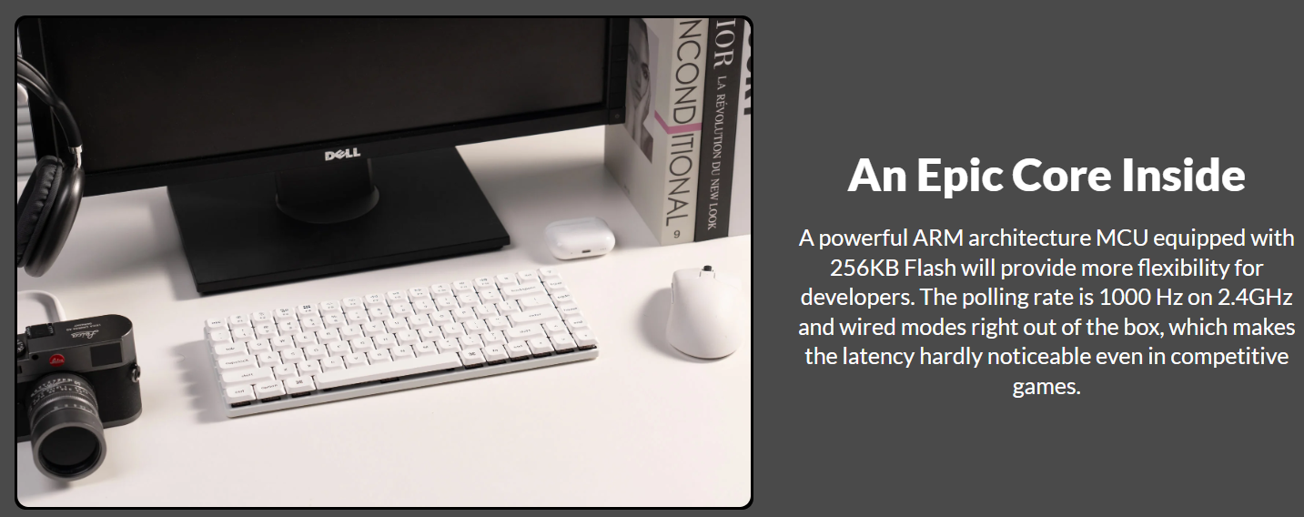 Game thủ: Cần hiệu suất tốc độ cao 2.4GHz và độ trễ thấp trong một thiết kế bàn phím cơ không dây gọn gàng.