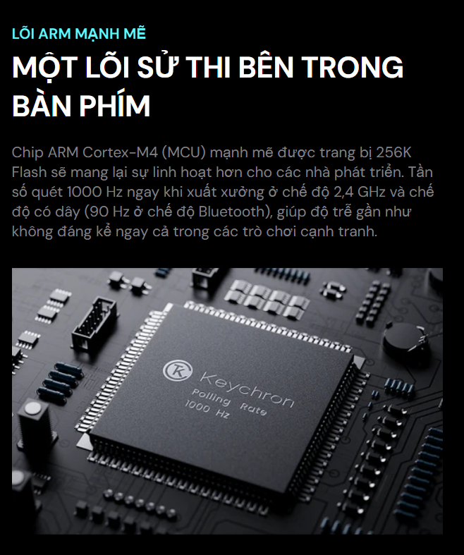 Keychron Q1 Max hỗ trợ kết nối Tri-mode linh hoạt (2.4 GHz, Bluetooth 5.1, Type-C Wired). Ở chế độ không dây 2.4 GHz và có dây, bàn phím đạt tốc độ Polling Rate 1000 Hz, đảm bảo độ trễ gần như bằng không. Tốc độ này là yếu tố then chốt để duy trì hiệu suất ổn định và chính xác trong mọi tác vụ.