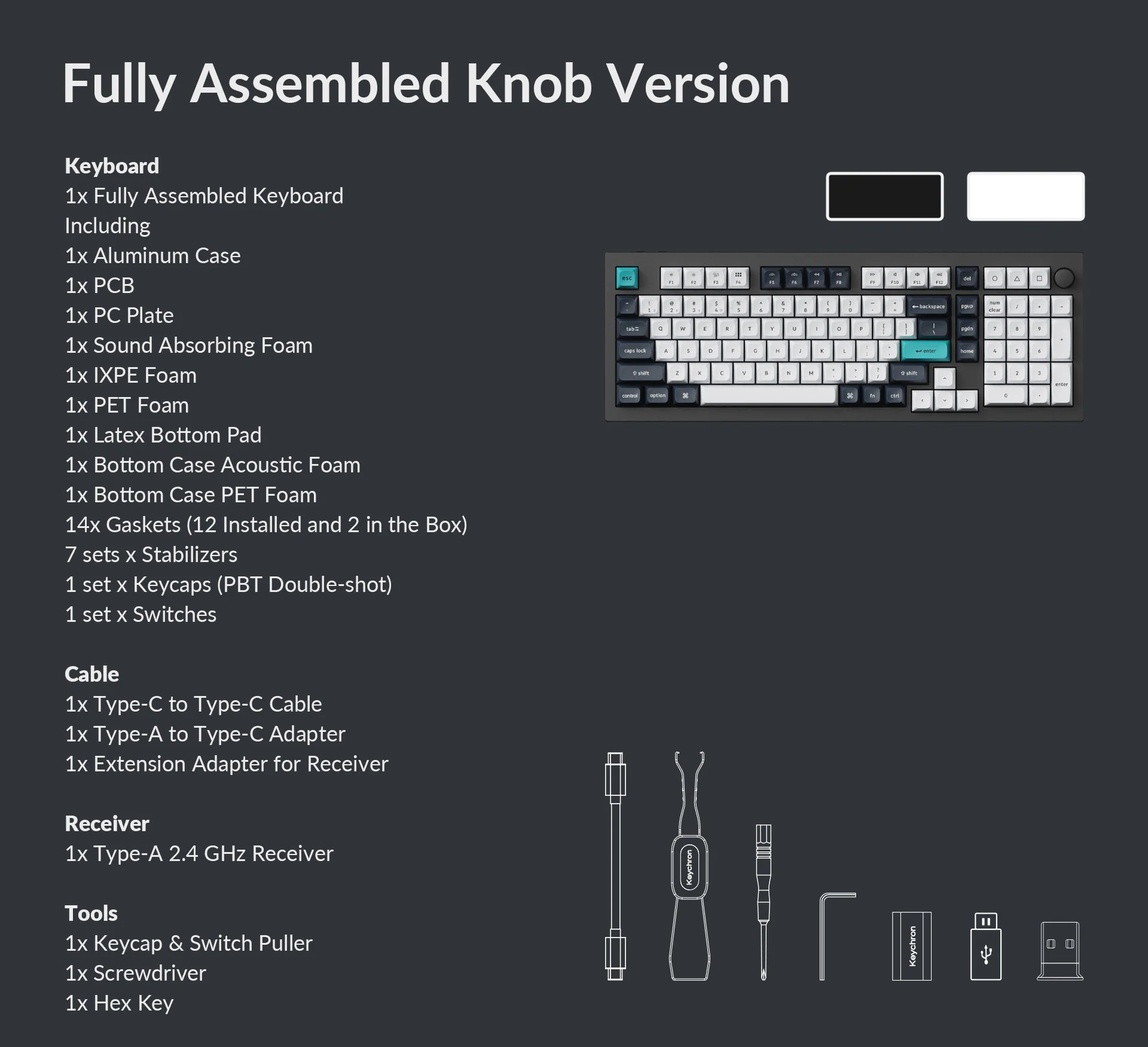 Với pin 4000 mAh Rechargeable li-polymer, bàn phím có thể hoạt động liên tục lên đến 180 giờ (khi tắt đèn nền) hoặc 100 giờ (ở độ sáng RGB thấp nhất). Bàn phím hoàn toàn Hot-swappable, sử dụng Gateron Jupiter Switch và Stabilizer PCB gắn vít, cho phép người dùng dễ dàng thay đổi switch và tinh chỉnh bàn phím mà không cần hàn.