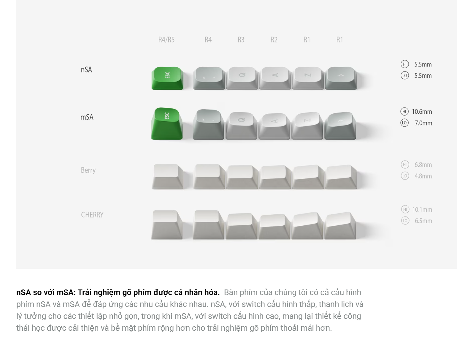 Switch: Switch Nano (cho Low Profile) mang lại trải nghiệm mượt mà, êm ái với âm thanh "thocky" bắt tai.