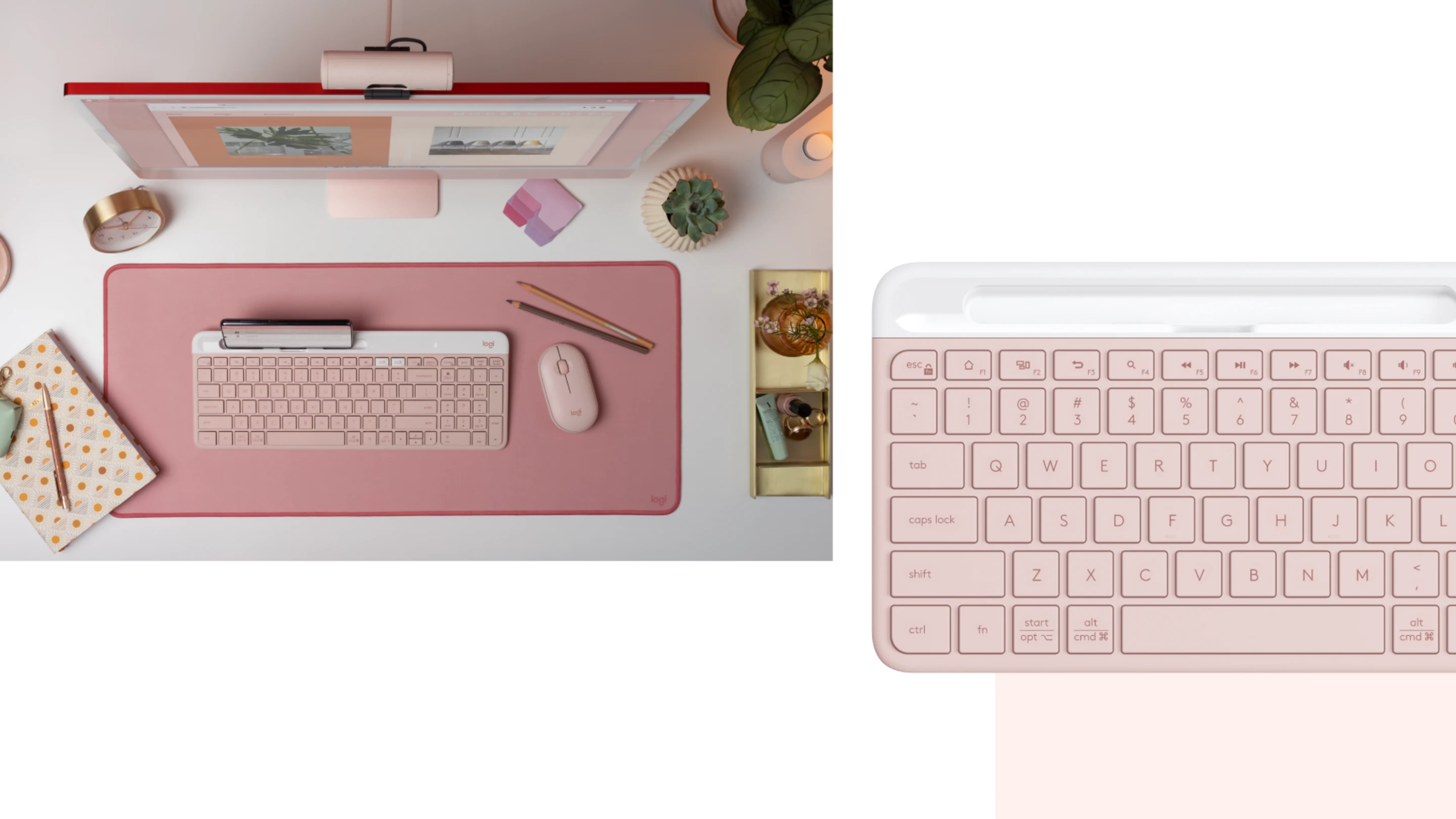 Rãnh được tích hợp phía trên phím chức năng là nơi tiện lợi để đặt điện thoại thông minh hoặc máy tính bảng. Tính năng này cho phép bạn dễ dàng theo dõi thông báo và chuyển đổi gõ phím giữa máy tính và thiết bị di động chỉ bằng một cú chạm.