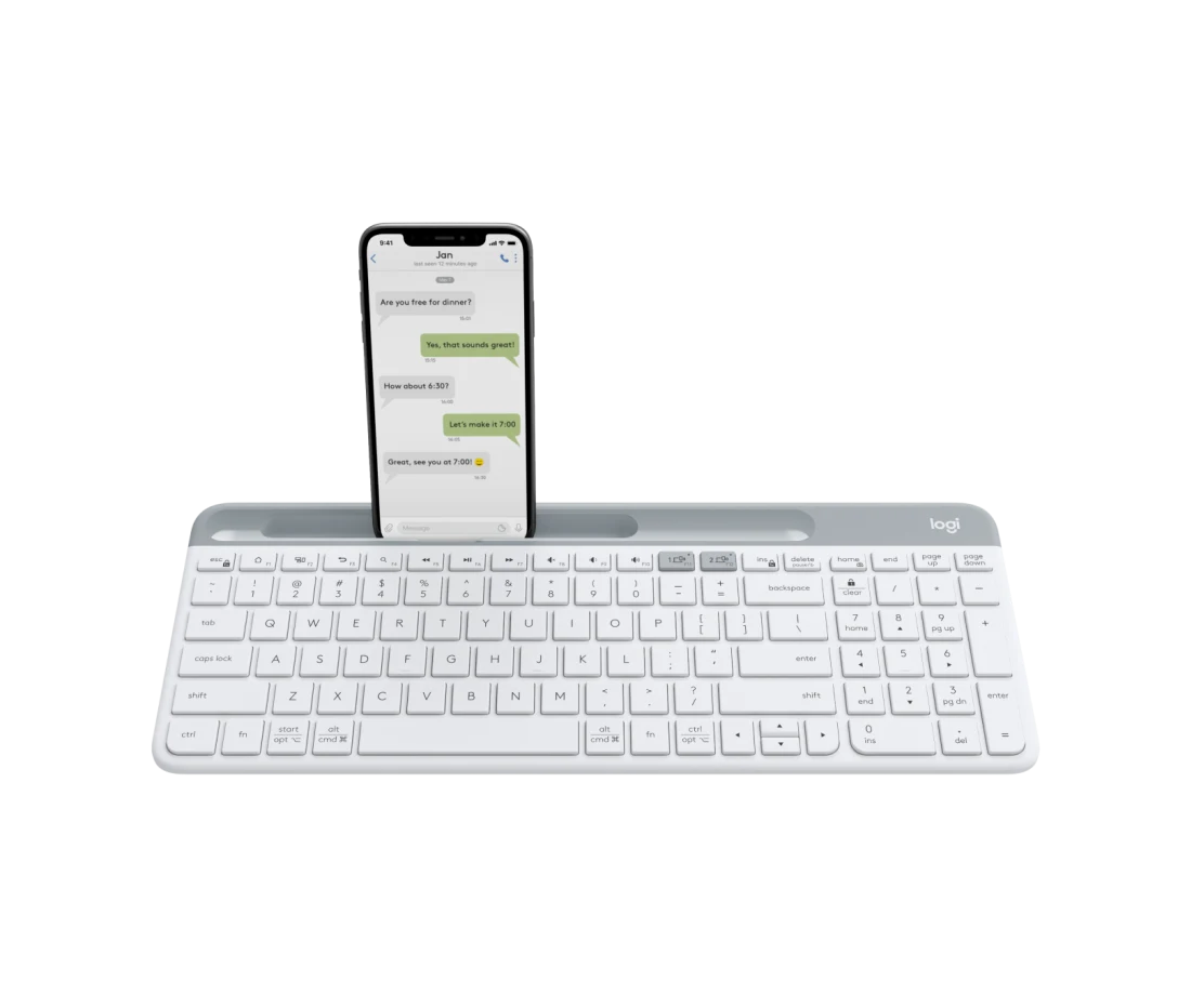 Bàn phím không dây Logitech K580 Slim Multi-Device là giải pháp tối ưu cho phong cách làm việc hiện đại, đòi hỏi sự đa nhiệm và linh hoạt giữa nhiều thiết bị. Chiếc bàn phím này nổi bật với thiết kế mỏng nhẹ (Slim) và Full-size, mang lại sự thoải mái và hiệu quả vượt trội mà vẫn tiết kiệm không gian. Điểm đặc biệt của K580 là rãnh tích hợp tiện lợi có thể giữ điện thoại hoặc máy tính bảng (kệ điện thoại), cho phép bạn gõ và chuyển đổi một cách dễ dàng giữa máy tính và các thiết bị di động. Với kết nối đa năng Logi Bolt/Bluetooth, Logitech K580 Slim là công cụ chuyên nghiệp để bạn làm chủ mọi tác vụ.