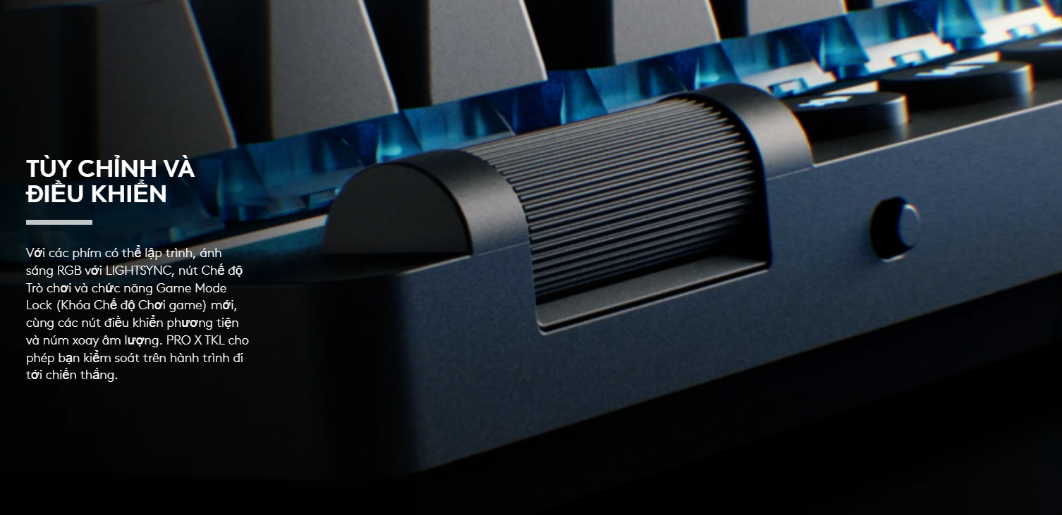 Loại bỏ cụm phím số để mở rộng diện tích di chuột – một yếu tố sống còn cho các xạ thủ FPS. Khác với phiên bản cũ, PRO X TKL đã bổ sung thêm các nút điều khiển phương tiện chuyên dụng và một con lăn điều chỉnh âm lượng mượt mà ngay trên bàn phím, giúp bạn thao tác nhanh mà không cần thoát game.