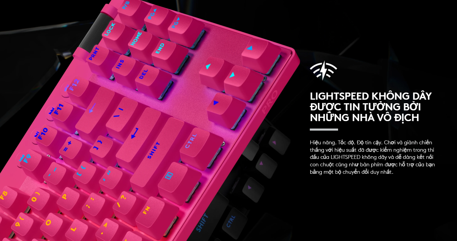 Bàn phím không dây Logitech PRO X TKL LIGHTSPEED là biểu tượng của sự chuyên nghiệp. Từ vật liệu PBT cao cấp đến công nghệ kết nối LIGHTSPEED cải tiến, mọi chi tiết trên chiếc bàn phím này đều hướng tới mục tiêu duy nhất: Giúp bạn giành chiến thắng. Đây không chỉ là một chiếc bàn phím cơ không dây, nó là một tiêu chuẩn mới cho thiết bị thi đấu Esports hiện đại.