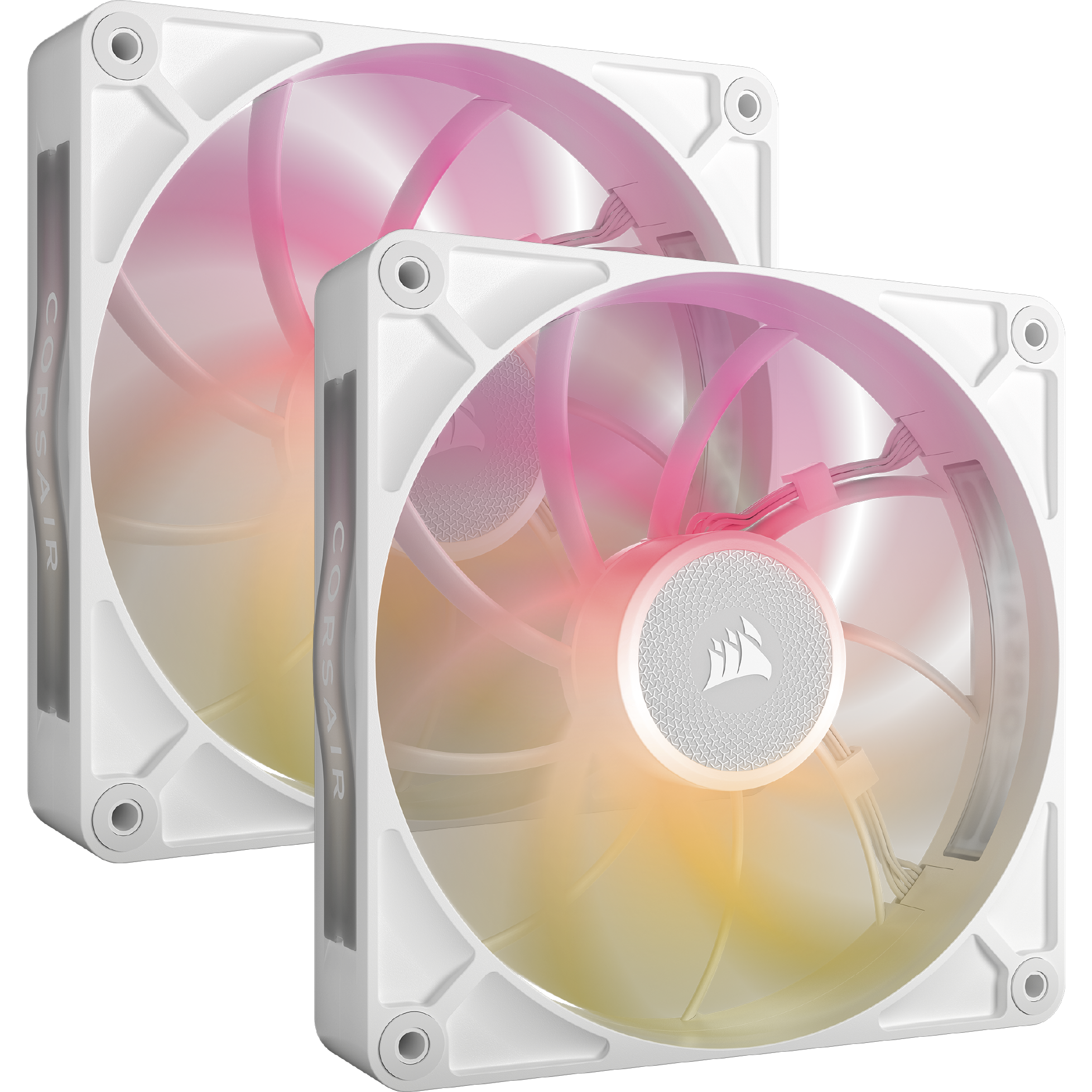 Mỗi quạt được trang bị đèn RGB sống động, dễ dàng điều khiển và đồng bộ hóa hiệu ứng với các linh kiện Corsair khác thông qua phần mềm iCUE, tạo nên một hệ thống ánh sáng PC nổi bật và cá nhân hóa.