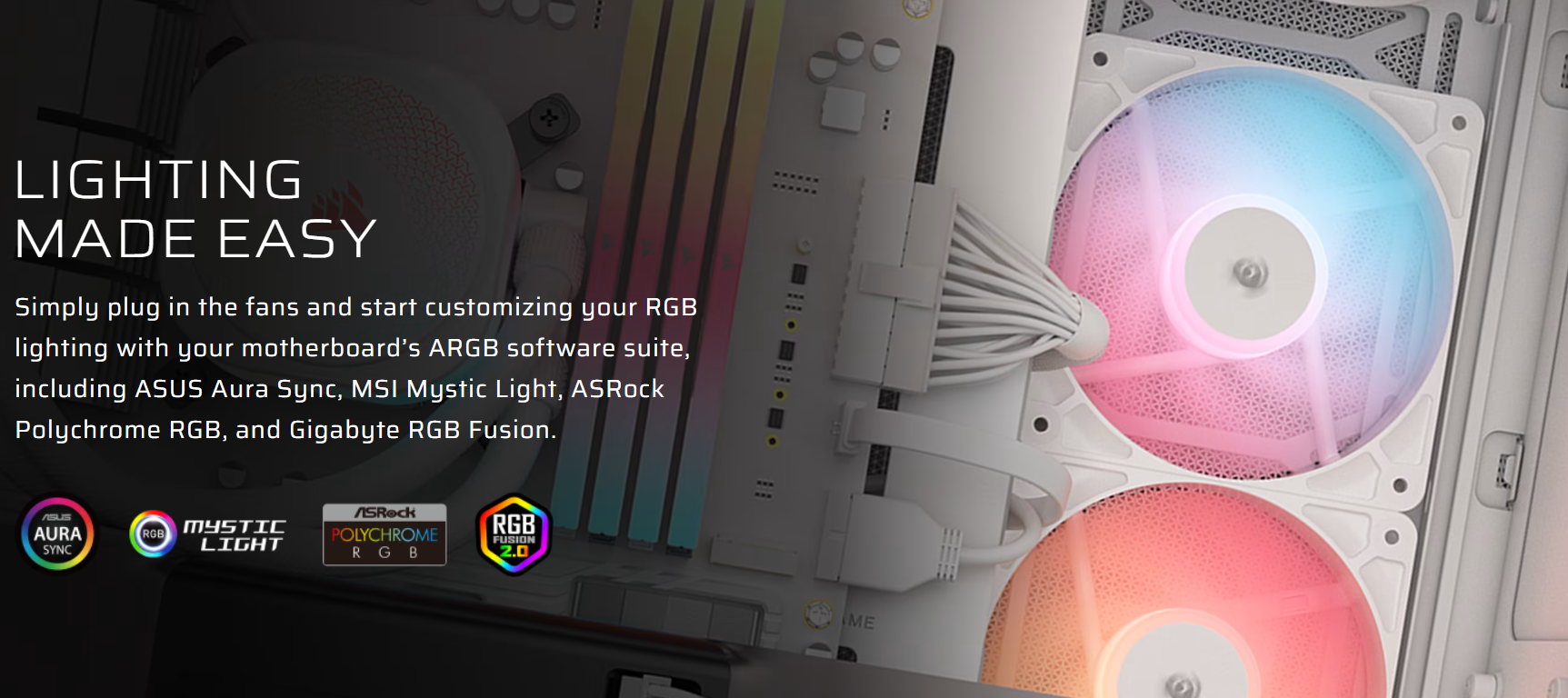 Tích hợp ARGB, dễ dàng đồng bộ ánh sáng với các linh kiện Corsair khác.
