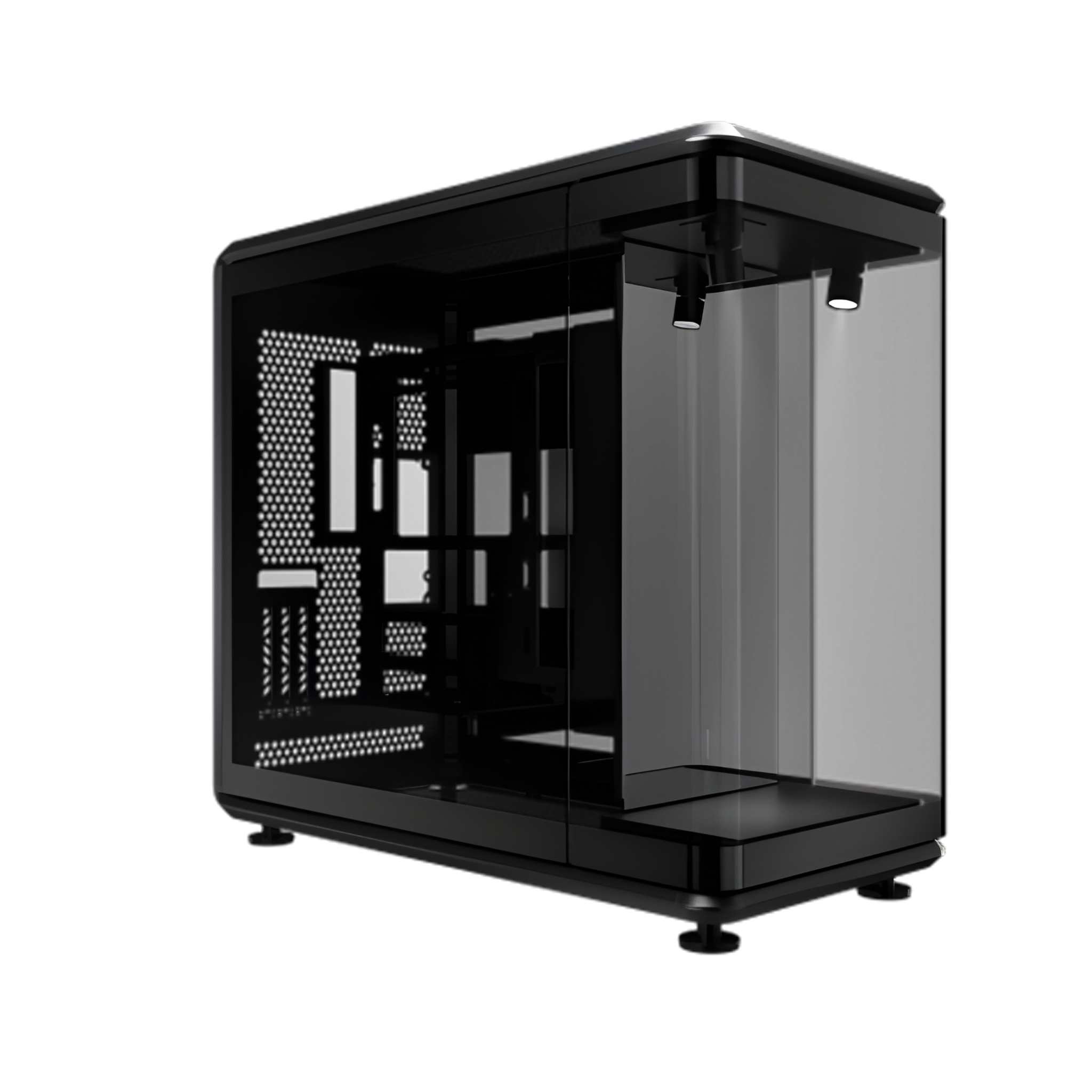 Với các tấm kính cường lực siêu trong suốt ở ba mặt, case cho phép bạn chiêm ngưỡng mọi chi tiết của linh kiện và các vật phẩm sưu tầm (collectibles) được đặt ở Front Display Stage (Sân khấu trưng bày phía trước). Tính năng này biến PC của bạn thành một trung tâm trình diễn sống động và đầy phong cách.
