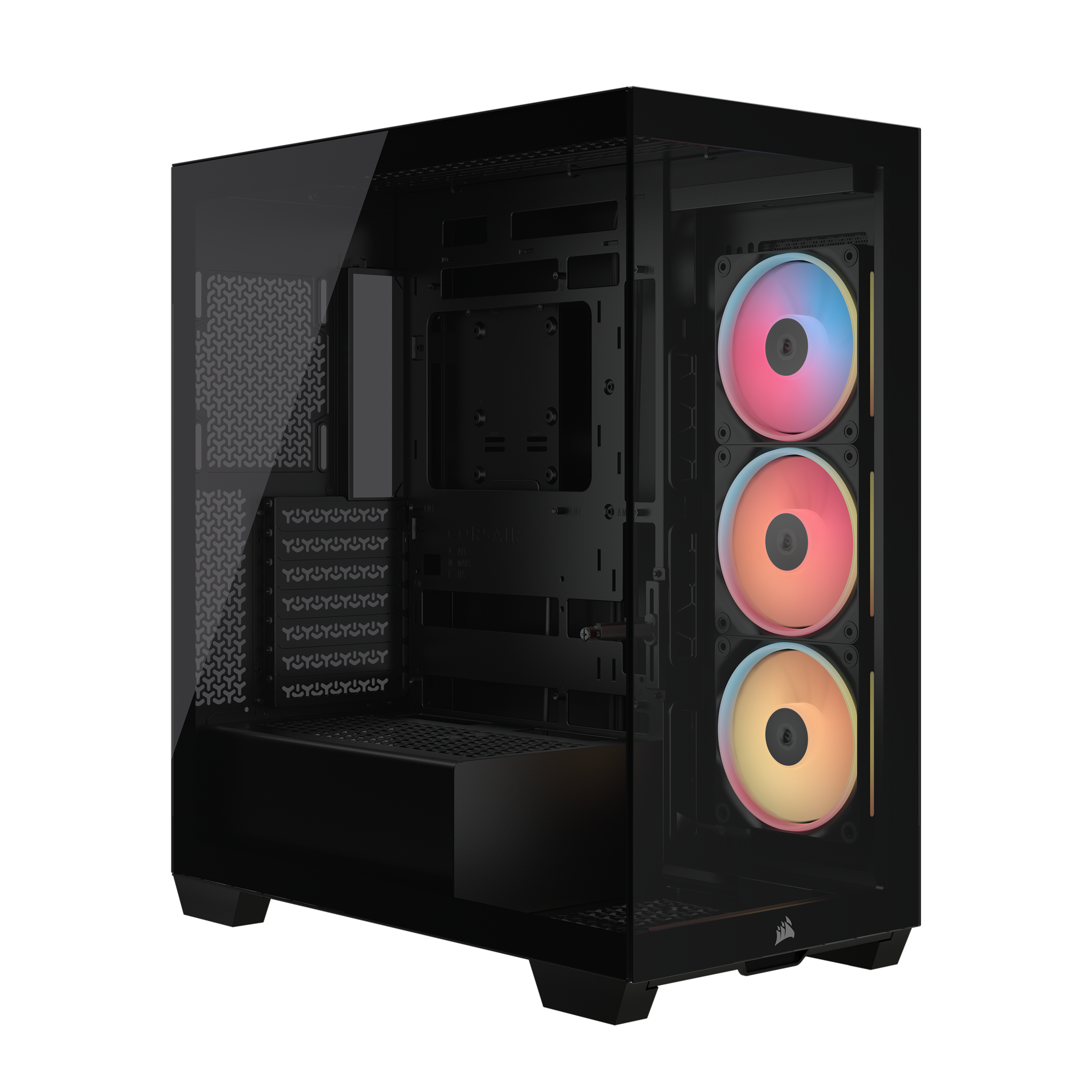 Corsair 3500X LX-R RGB iCUE LINK có thiết kế kính cường lực liền mạch ở mặt trước và mặt bên, loại bỏ các trụ kim loại cản trở tầm nhìn. Thiết kế này lý tưởng để phô diễn các linh kiện cao cấp và ánh sáng RGB rực rỡ từ các quạt iCUE LINK LX-R đi kèm, tạo nên một không gian hiển thị PC độc đáo.