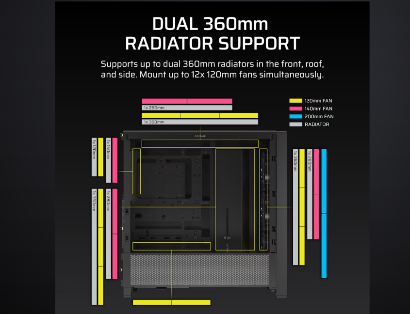 - Radiator Support: 120/140/240/280/360mm
