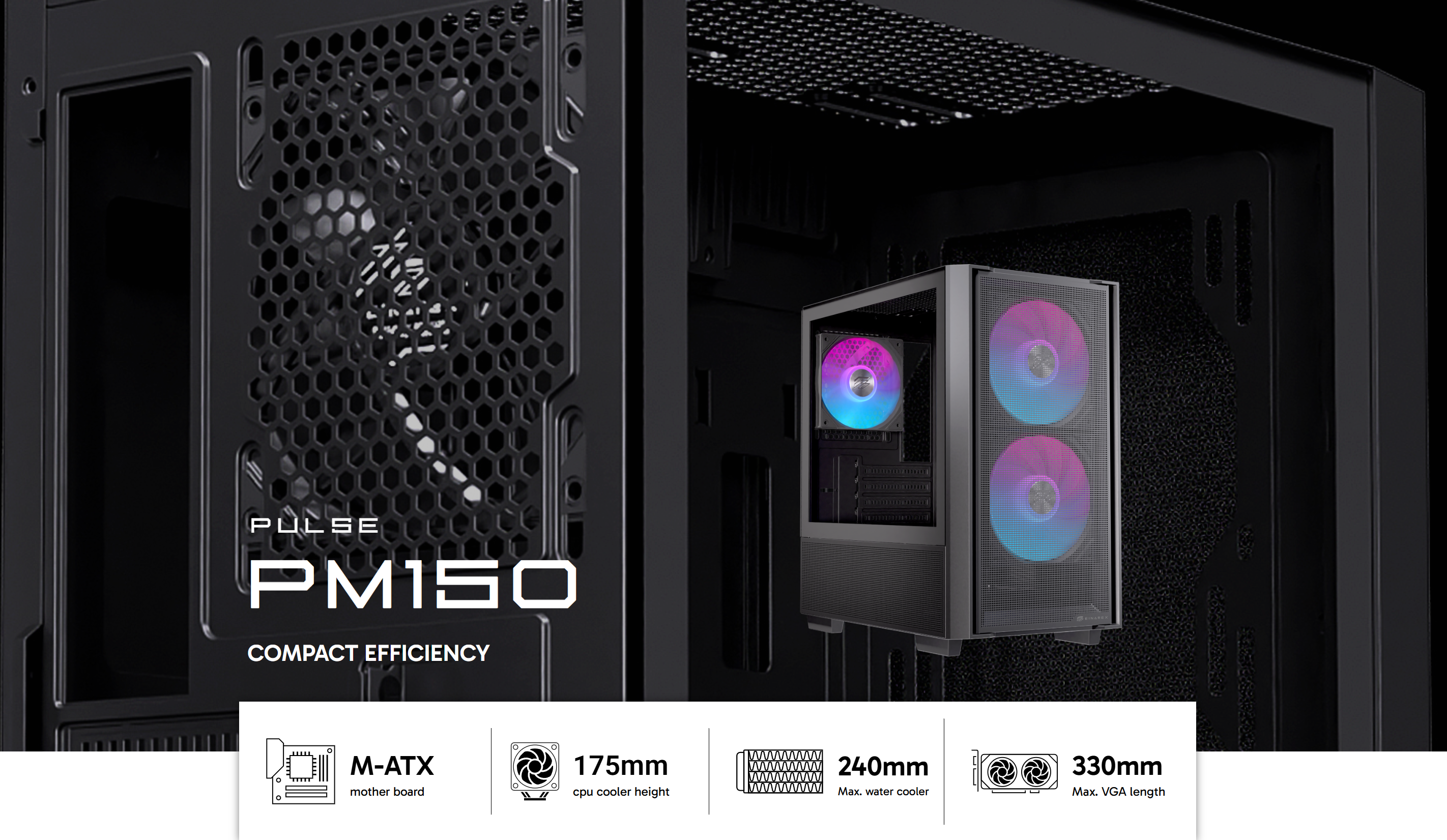 Khả năng tương thích linh hoạt: Mặc dù có kích thước nhỏ, Pulse PM150 vẫn hỗ trợ lắp đặt các linh kiện hiệu năng cao. Case có thể chứa card đồ họa dài tới 330mm và tản nhiệt CPU cao tới 175mm, cho phép bạn lắp đặt các VGA và tản nhiệt phổ biến trên thị trường.