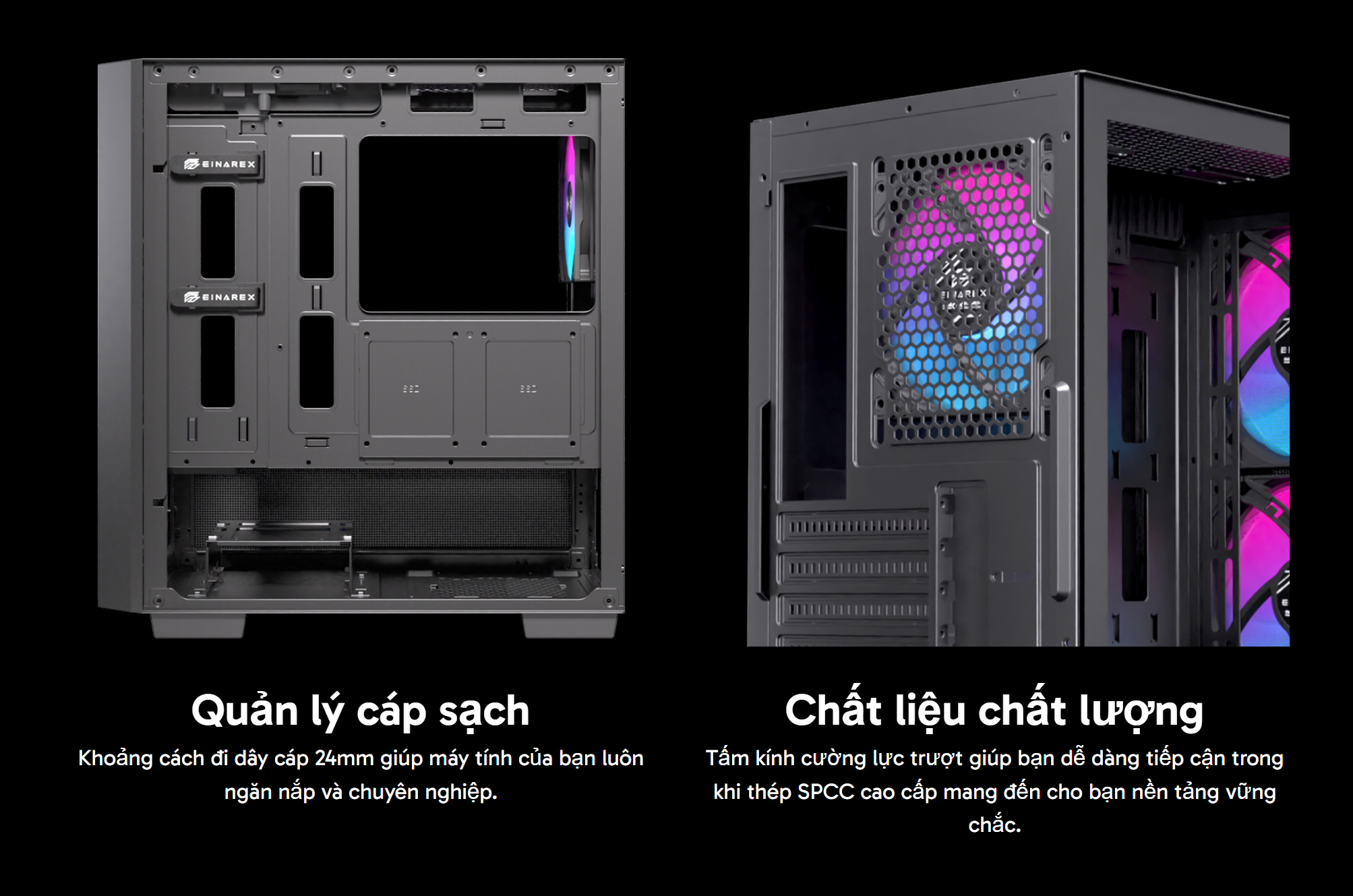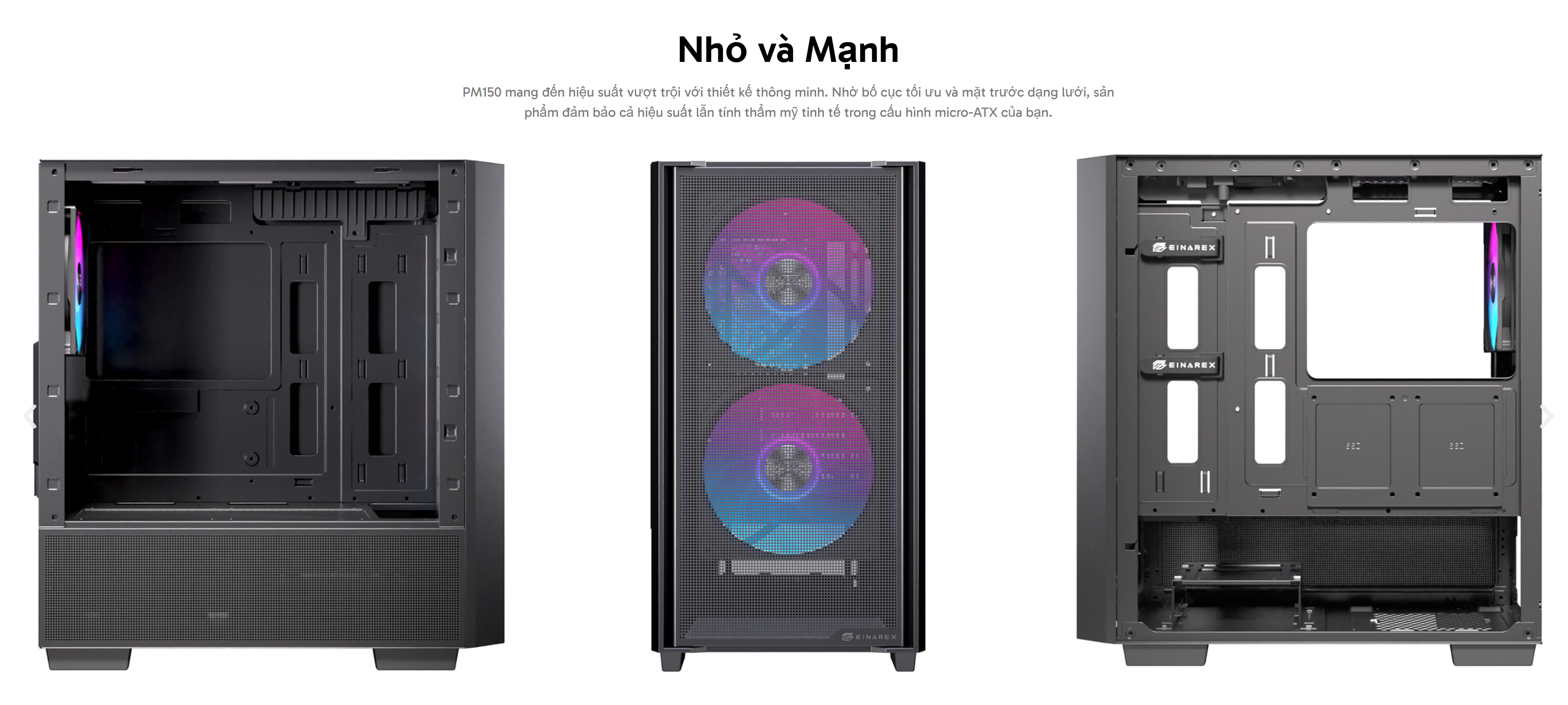 Case Einarex Pulse PM150 là một sự lựa chọn tuyệt vời, mang lại sự cân bằng hoàn hảo giữa thiết kế nhỏ gọn, thẩm mỹ và khả năng tương thích linh hoạt. Với khả năng hỗ trợ tản nhiệt và các linh kiện hiệu năng cao, chiếc case này sẽ là nền tảng vững chắc để bạn xây dựng một bộ máy tính mạnh mẽ, đáng tin cậy.