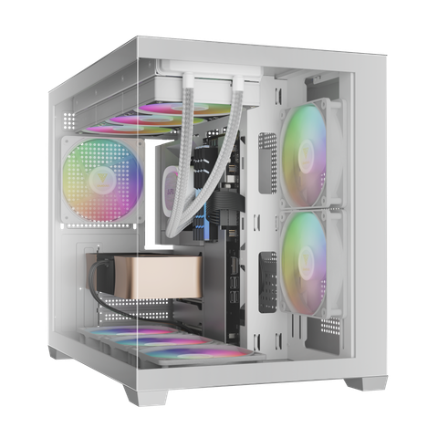 Case GAMDIAS AURA GC10M V2 ARGB là lựa chọn hoàn hảo cho những ai tìm kiếm một vỏ case Micro-Tower nhỏ gọn nhưng vẫn mang lại không gian trình diễn linh kiện ấn tượng. Với thiết kế kính cường lực liền mạch ở mặt trước và bên hông, sản phẩm biến bộ máy của bạn thành một tác phẩm nghệ thuật thực thụ. Được trang bị sẵn ba quạt ARGB và khả năng tương thích linh kiện cao cấp, AURA GC10M V2 mang đến sự cân bằng hoàn hảo giữa thẩm mỹ, hiệu suất làm mát và sự tiện dụng.