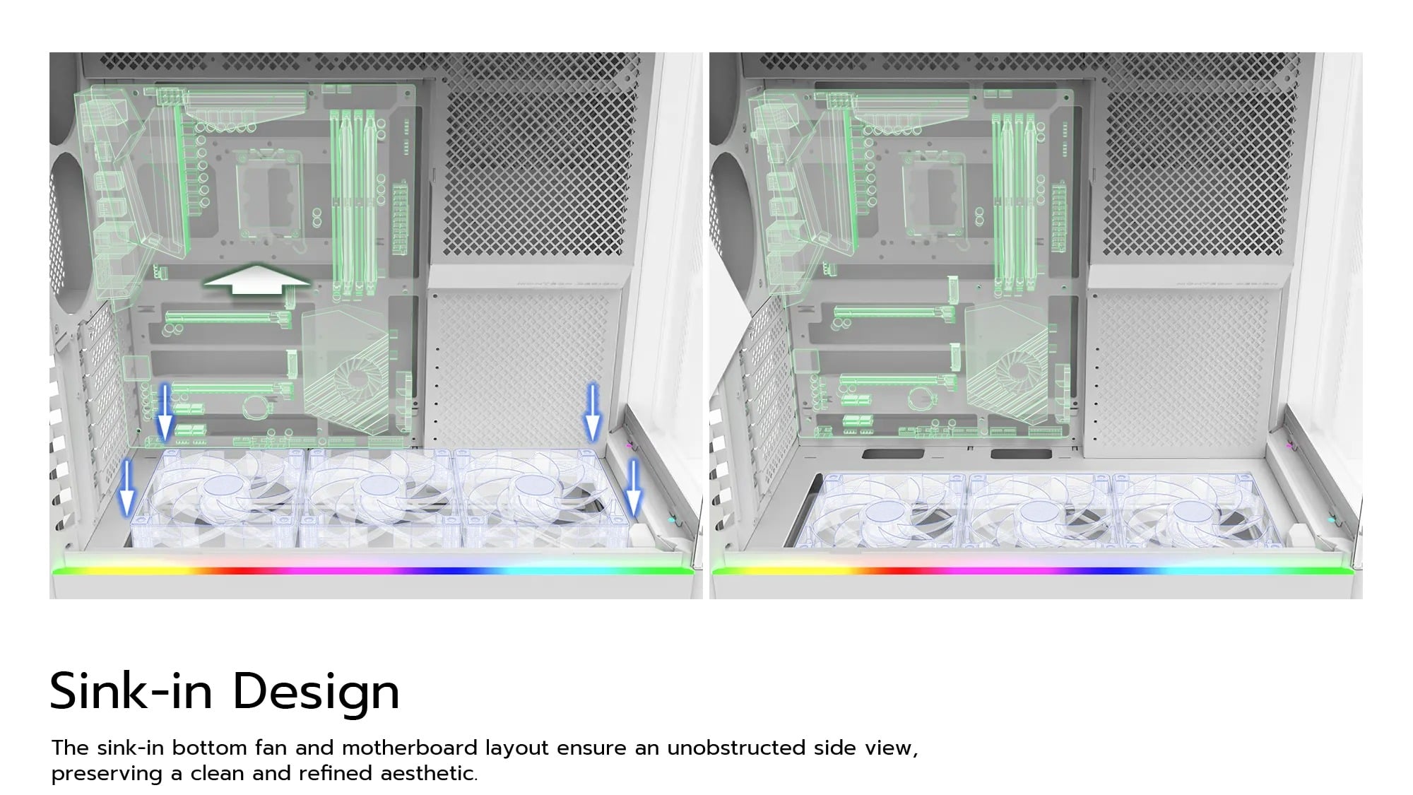 Sở hữu các tấm kính cường lực siêu trong suốt không có cột trụ ở góc, Montech HS02 PRO mang đến góc nhìn toàn cảnh 270 độ. Mọi linh kiện đắt giá như tản nhiệt LCD, RAM RGB hay Card đồ họa khổng lồ của bạn đều được phô diễn một cách trọn vẹn và lung linh nhất.