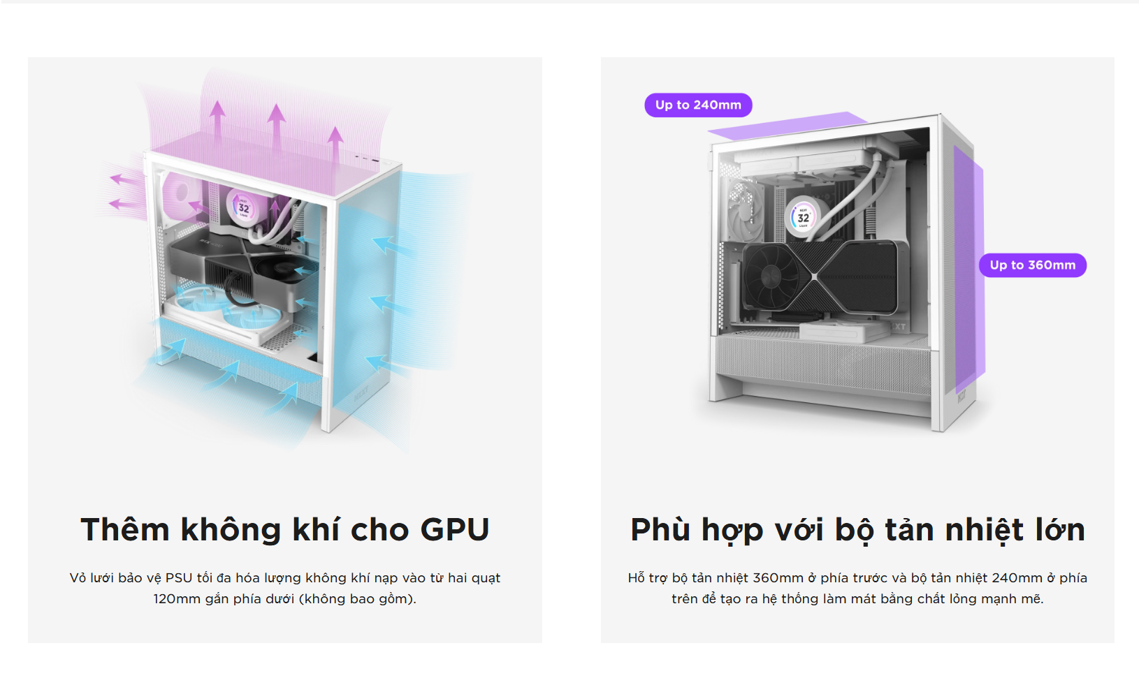 Trên: Lên tới 240mm (280mm với RAM low-profile)