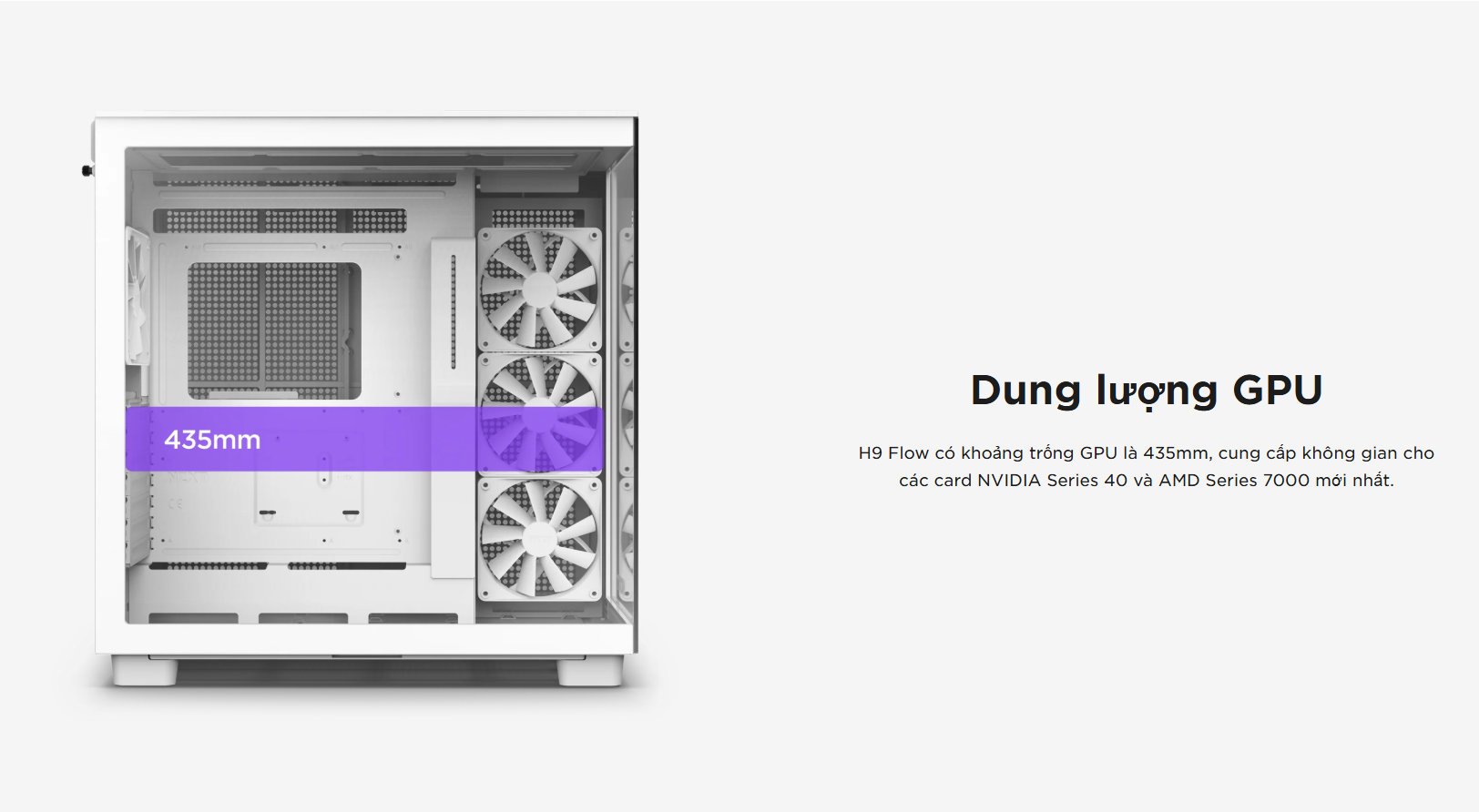 Khả năng tương thích linh hoạt: H9 Elite có không gian rộng rãi để lắp đặt các linh kiện hiệu năng cao. Case hỗ trợ card đồ họa dài tới 435mm và tản nhiệt CPU cao tới 165mm.