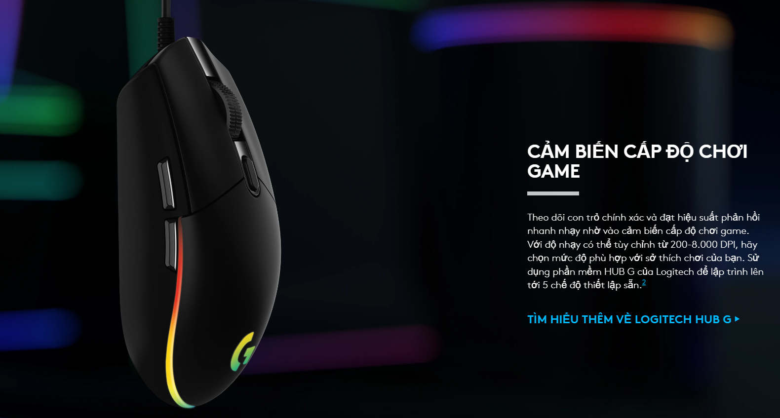 Điểm nhấn lớn nhất trên phiên bản Gen 2 chính là công nghệ Lightsync RGB. Không chỉ dừng lại ở việc đổi màu đơn thuần, Logitech G102 Gen 2 cho phép bạn tùy chỉnh các hiệu ứng sóng màu (Color Wave) rực rỡ với 16,8 triệu màu. Bạn có thể đồng bộ ánh sáng theo âm thanh, hình ảnh trên màn hình hoặc cá nhân hóa từng vùng màu thông qua phần mềm Logitech G HUB.