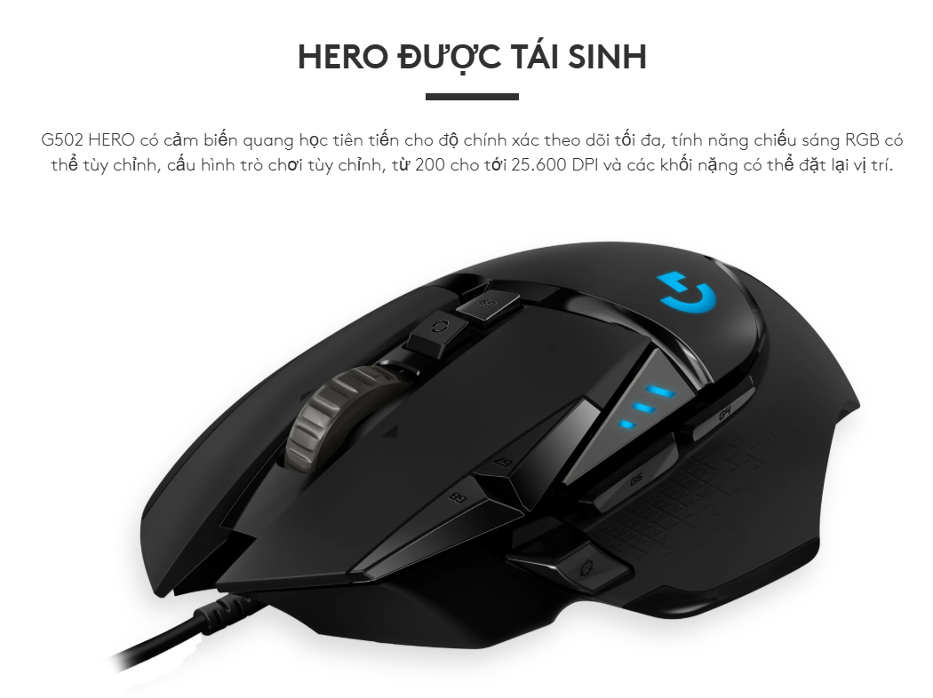 Chuột có dây Logitech G502 HERO Gaming không chỉ là một thiết bị ngoại vi, mà là một huyền thoại trong cộng đồng game thủ toàn cầu. Được mệnh danh là "chuột gaming bán chạy nhất thế giới", G502 HERO hội tụ đầy đủ những gì một game thủ khắt khe nhất cần: độ chính xác tuyệt đối từ cảm biến HERO 25K, khả năng tùy biến vô hạn với 11 nút lập trình và thiết kế công thái học mang tính biểu tượng. Dù bạn là một xạ thủ FPS cần sự chuẩn xác hay một đại sư MOBA cần hệ thống macro phức tạp, Logitech G502 HERO luôn sẵn sàng đáp ứng và giúp bạn làm chủ mọi cuộc chơi.