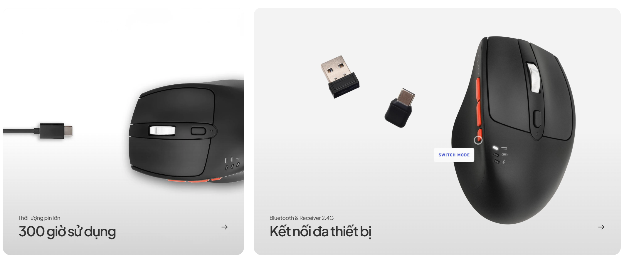 - Thời lượng pin ấn tượng: Với dung lượng pin 300mAh, chuột Silentium cho thời gian sử dụng liên tục lên đến 300 giờ và thời gian chờ đáng kinh ngạc lên đến 600 giờ, giúp bạn thoải mái làm việc mà không cần lo lắng về việc sạc pin thường xuyên.