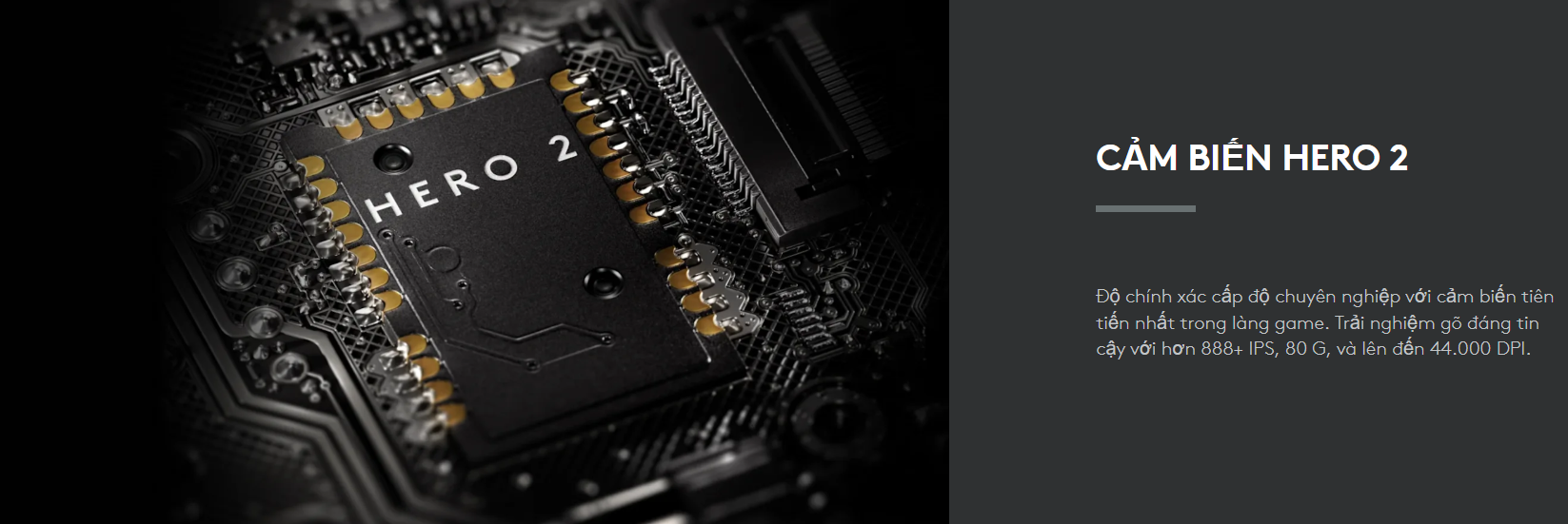 Cảm biến HERO 2 thế hệ mới mang lại khả năng theo dõi vượt trội với độ phân giải lên đến 32.000 DPI và tốc độ theo dõi trên 500 IPS. HERO 2 cho phép tinh chỉnh độ nhạy theo trục X và Y một cách độc lập, giúp bạn cá nhân hóa hoàn toàn cảm giác di chuột theo thói quen thi đấu.