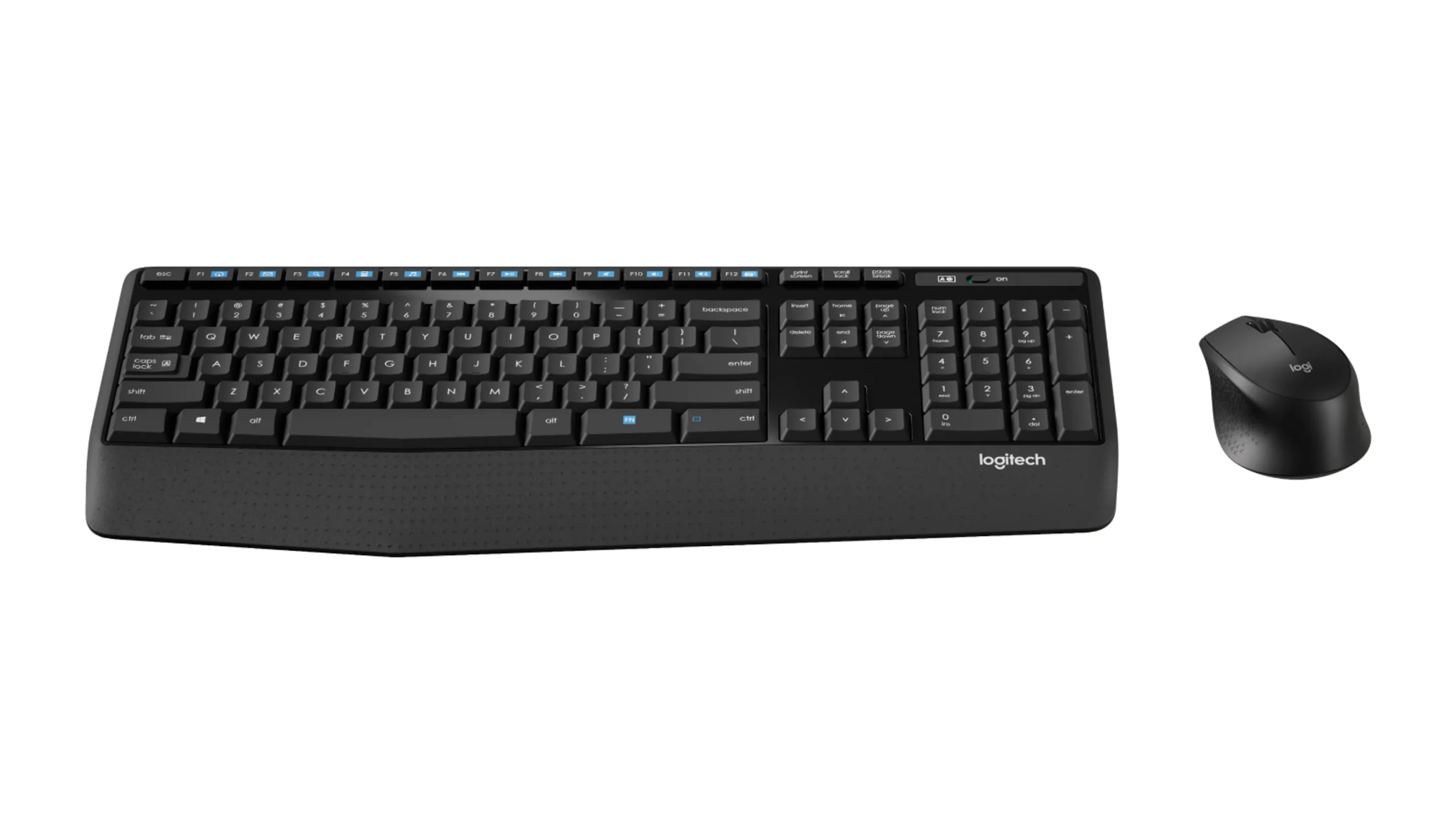 Bàn phím trong combo MK345 có thiết kế Full-size với các phím bấm tiêu chuẩn và một đệm kê cổ tay lớn được tích hợp. Thiết kế này mang lại sự hỗ trợ thoải mái và công thái học cơ bản, giúp cổ tay được nghỉ ngơi, tối ưu cho người dùng phải làm việc liên tục.