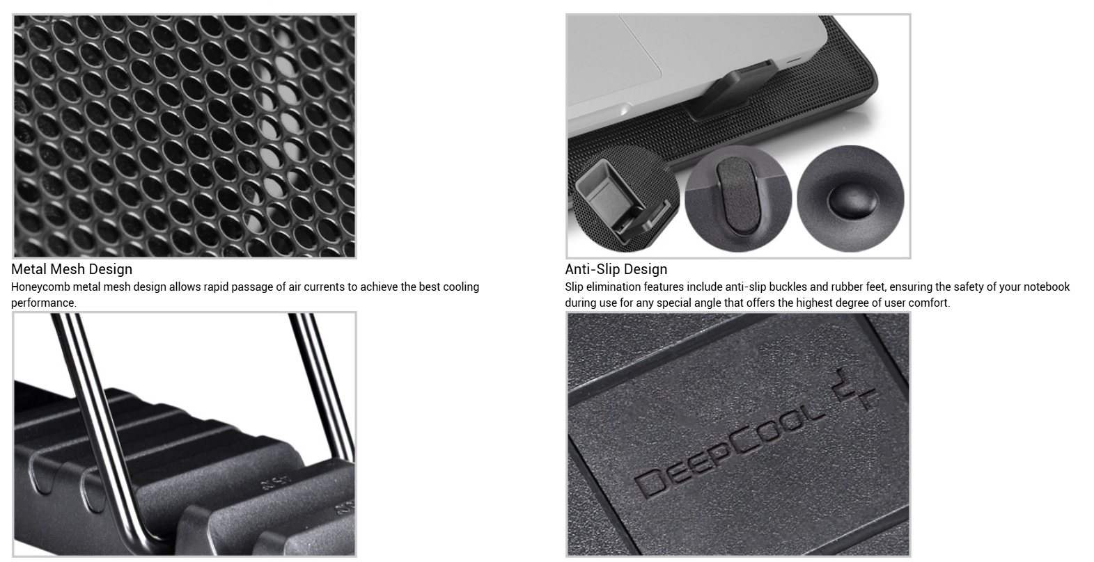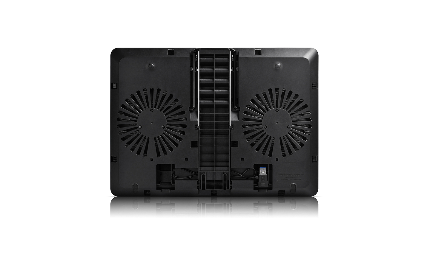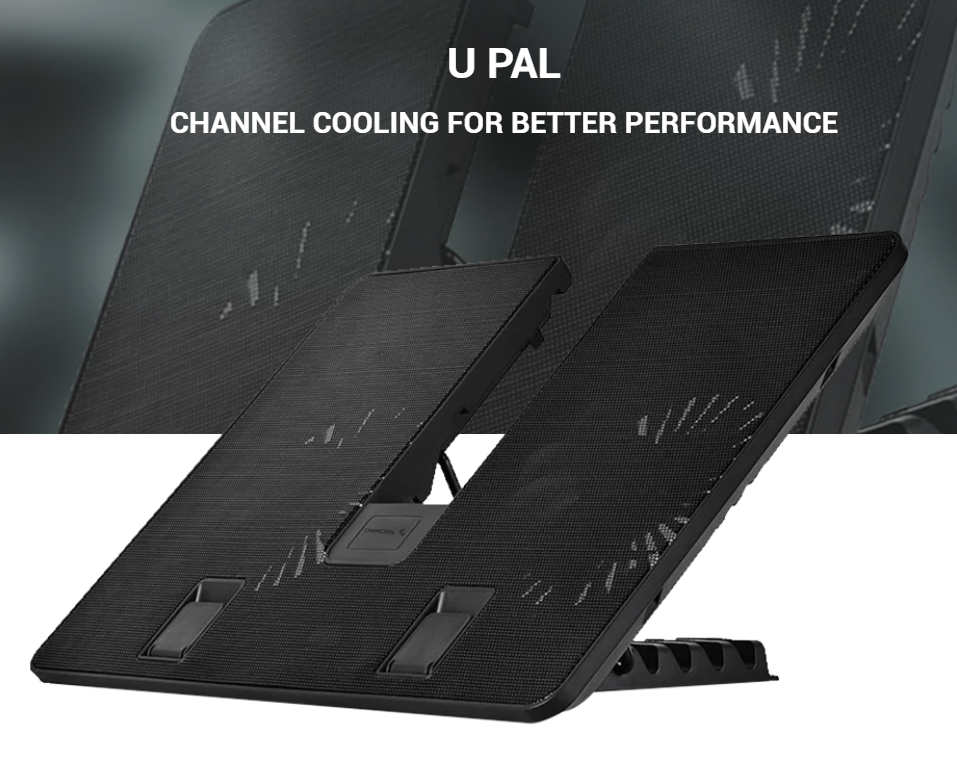 Điểm nhấn khác biệt của Đế tản nhiệt Laptop Deepcool U PAL chính là thiết kế rãnh chữ U độc đáo. Thiết kế này không chỉ mang tính thẩm mỹ mà còn giúp luồng không khí mát được dẫn truyền trực tiếp đến các vị trí tập trung nhiệt lượng lớn trên mặt đáy Laptop. Khoảng trống ở giữa giúp khí nóng thoát ra ngoài dễ dàng hơn, ngăn chặn tình trạng khí nóng bị luẩn quẩn bên dưới máy.