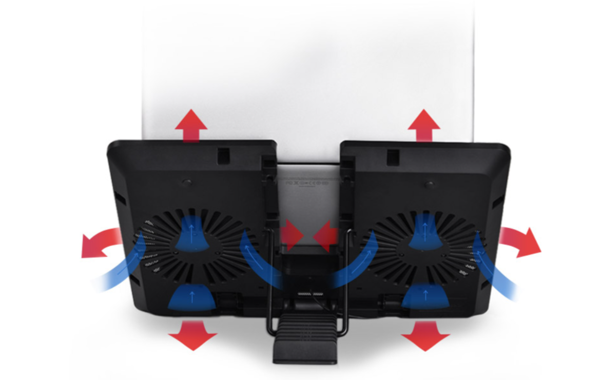 Sản phẩm được trang bị 2 quạt làm mát kích thước 14cm, cung cấp lưu lượng gió cực lớn để bao phủ toàn diện mặt đáy của các dòng Laptop từ 14 đến 15.6 inch. Dù sở hữu sức mạnh thổi gió ấn tượng, hệ thống quạt của Đế tản nhiệt Laptop Deepcool U PAL vẫn vận hành cực kỳ êm ái, đảm bảo không gian yên tĩnh tuyệt đối cho bạn tập trung làm việc.