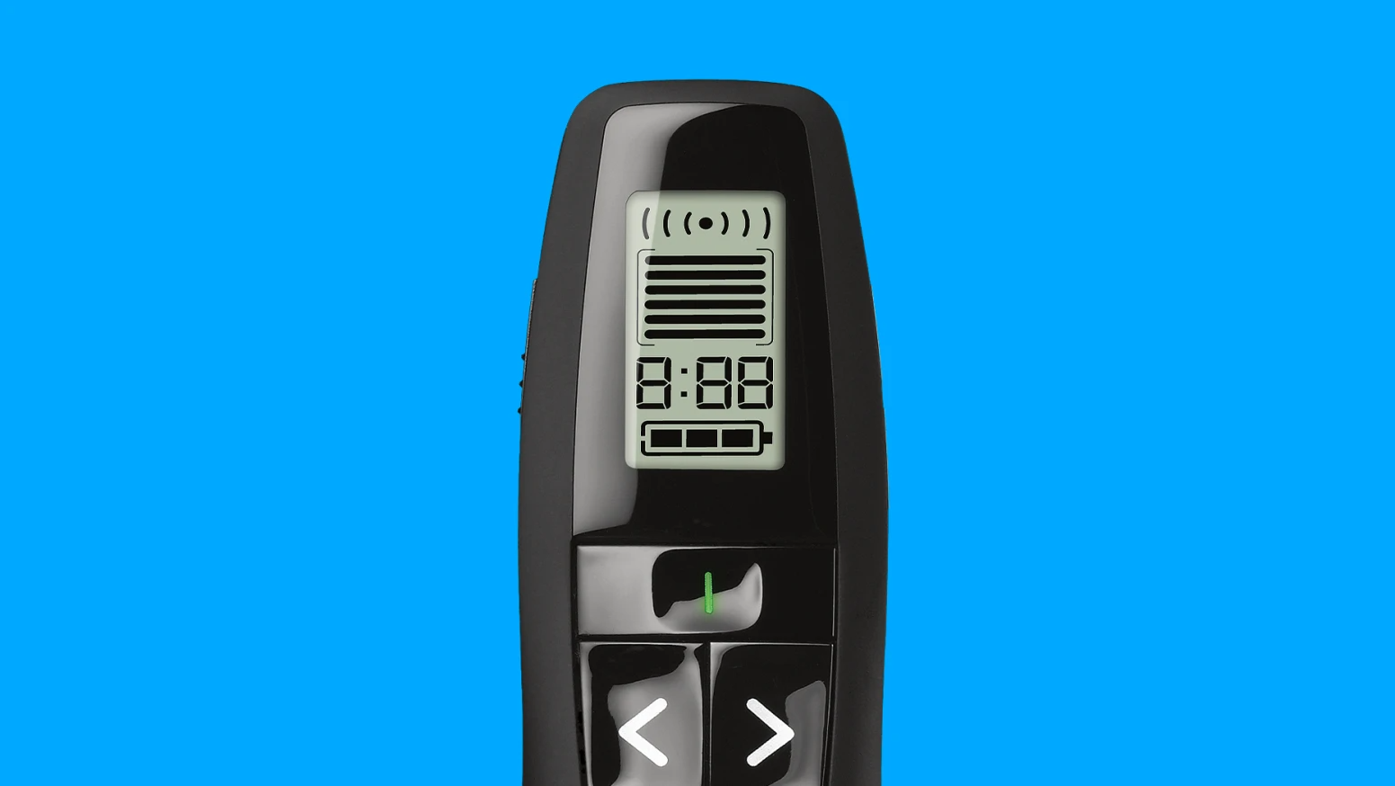 R800 tích hợp một màn hình LCD tiện lợi hiển thị thời gian thuyết trình và cường độ tín hiệu không dây. Đặc biệt, tính năng hẹn giờ (timer) và cảnh báo rung linh hoạt (vibration alerts) giúp bạn quản lý thời gian một cách dễ dàng mà không cần phải nhìn đồng hồ, duy trì sự chuyên nghiệp và tương tác với khán giả.