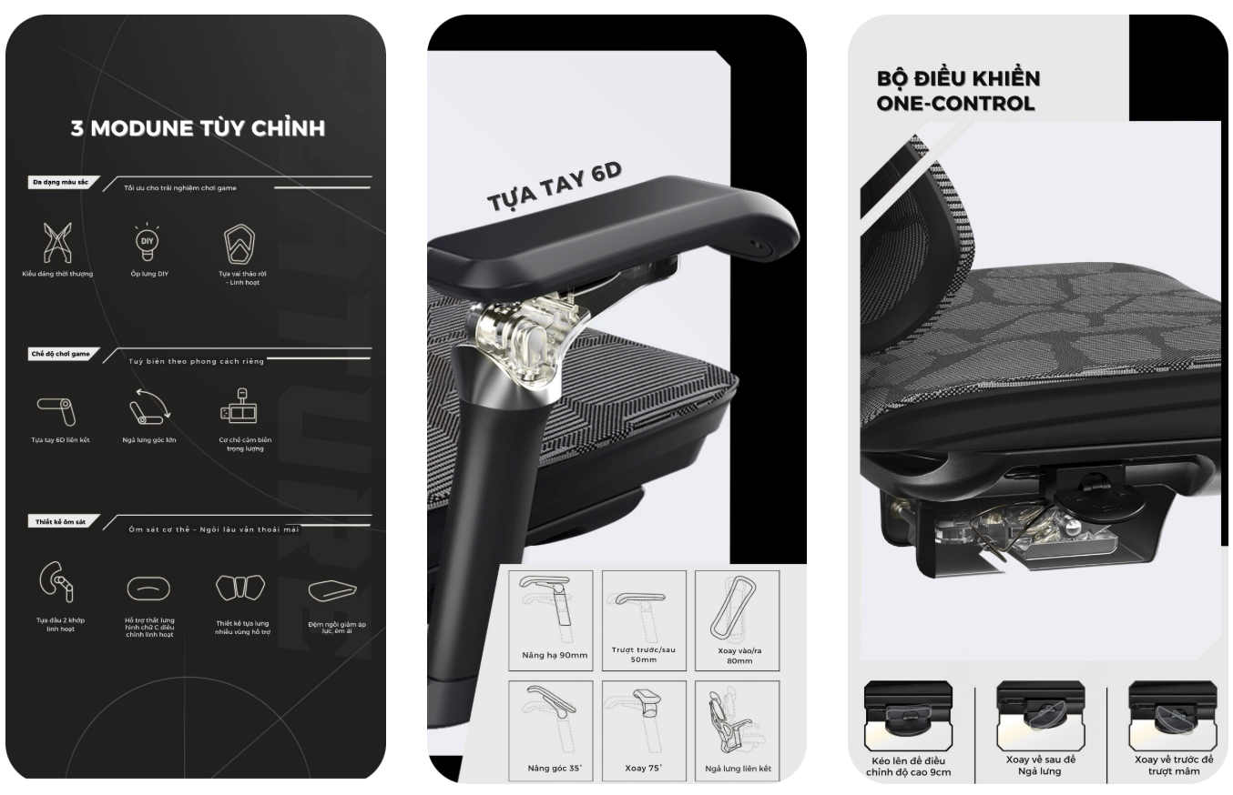 Gami X5 Pro sở hữu form dáng chuẩn công thái học, ôm trọn đường cong cơ thể, giúp duy trì tư thế ngồi chuẩn trong thời gian dài mà không gây đau mỏi. - OneControl – Bộ điều khiển đa năng cao cấp