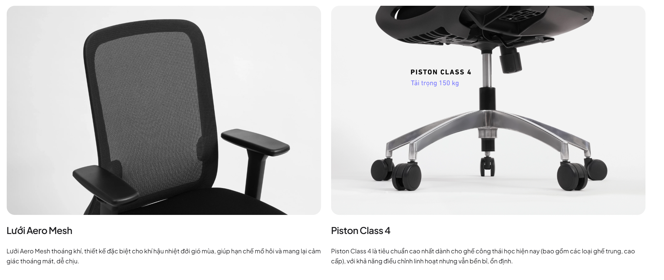 - Thiết kế vững chắc, bền bỉ: Ghế sử dụng Piston Class 4 và chân nhôm đúc đánh bóng tinh tế, mang lại sự chắc chắn và độ bền cao. Sản phẩm phù hợp với người dùng có chiều cao từ 150 - 190 cm và cân nặng từ 40 - 100 kg.