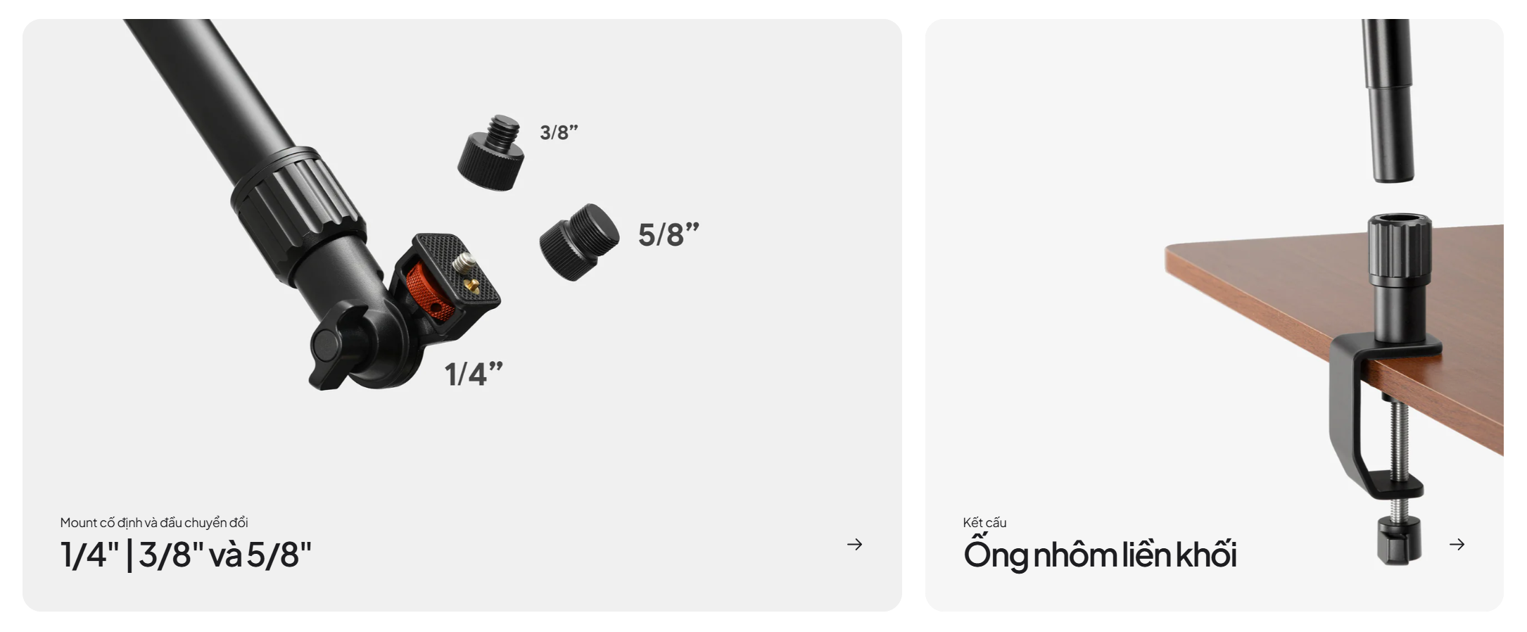 - Mount và adapter: 1/4", 3/8" và 5/8"