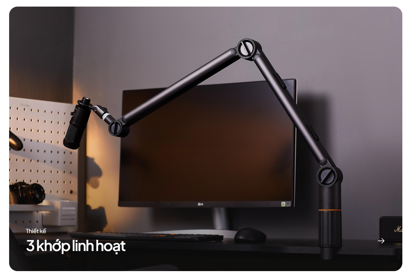 HyperWork MA01S là giá đỡ microphone được thiết kế tinh gọn nhưng vẫn đảm bảo sự chắc chắn và chuyên nghiệp. Sản phẩm là lựa chọn hoàn hảo cho các streamer, podcaster, Youtuber và người làm việc tại nhà, giúp tối ưu hóa không gian bàn làm việc, mang lại sự gọn gàng và nâng cao chất lượng âm thanh. Với 3 khớp nối linh hoạt, MA01S là trợ thủ đắc lực cho mọi tác vụ thu âm.