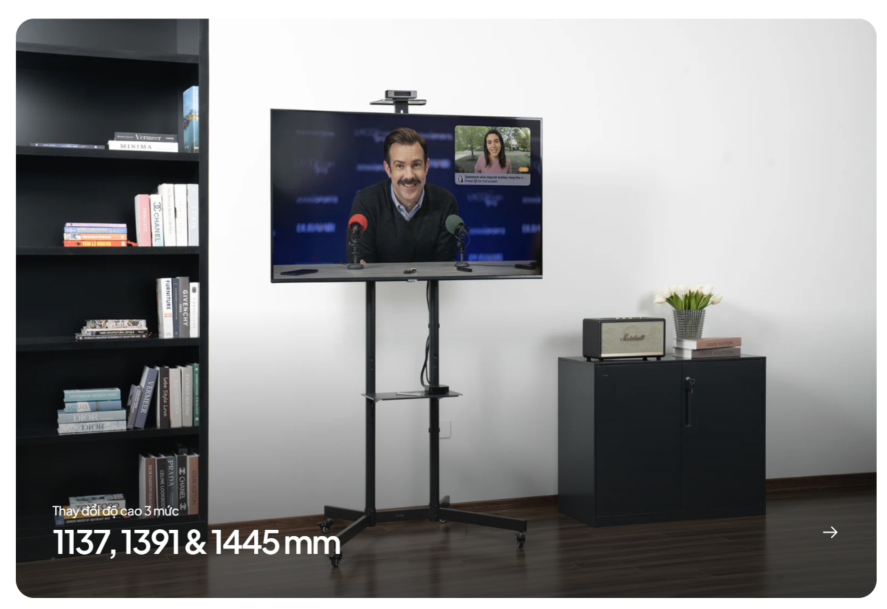 - Thiết kế tiện lợi, di chuyển dễ dàng: Sản phẩm được trang bị hệ thống bánh xe chắc chắn, giúp bạn dễ dàng di chuyển TV đến bất kỳ vị trí nào trong nhà hoặc văn phòng. Khóa bánh an toàn đảm bảo TV luôn đứng vững và ổn định khi không di chuyển.
