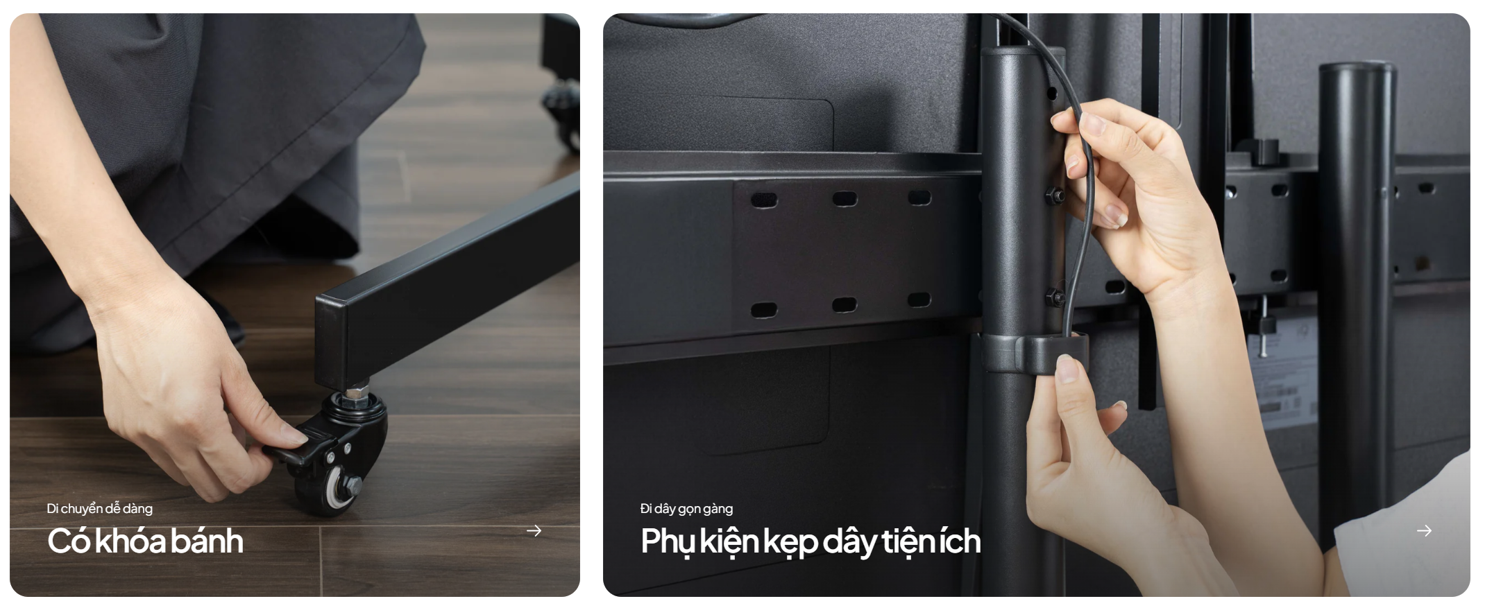 - Chất liệu bền bỉ và thẩm mỹ: Được chế tác từ thép và nhựa chất lượng cao, phủ sơn tĩnh điện màu đen, TVC01 có độ bền vượt trội và vẻ ngoài tối giản, hiện đại, dễ dàng hòa hợp với mọi phong cách nội thất.