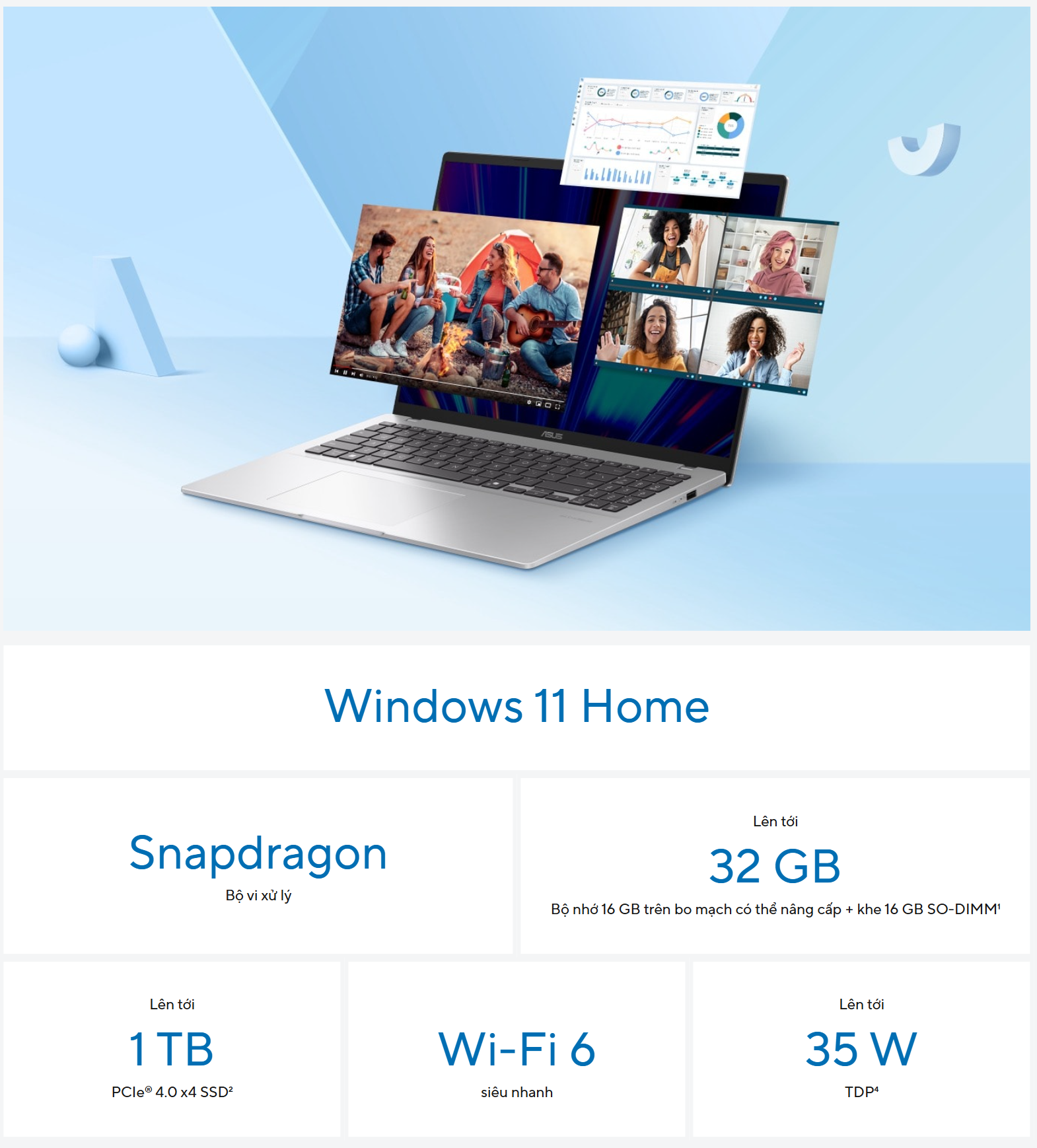 ASUS Vivobook 16 A1607QA-MB067WS là một sự lựa chọn thông minh cho những ai đang tìm kiếm một chiếc laptop kết hợp giữa hiệu năng mạnh mẽ, tính di động cao và thiết kế hiện đại. Với bộ xử lý Qualcomm Snapdragon X Elite cùng các tính năng AI, sản phẩm này sẽ là trợ thủ đắc lực giúp bạn hoàn thành mọi công việc một cách hiệu quả.