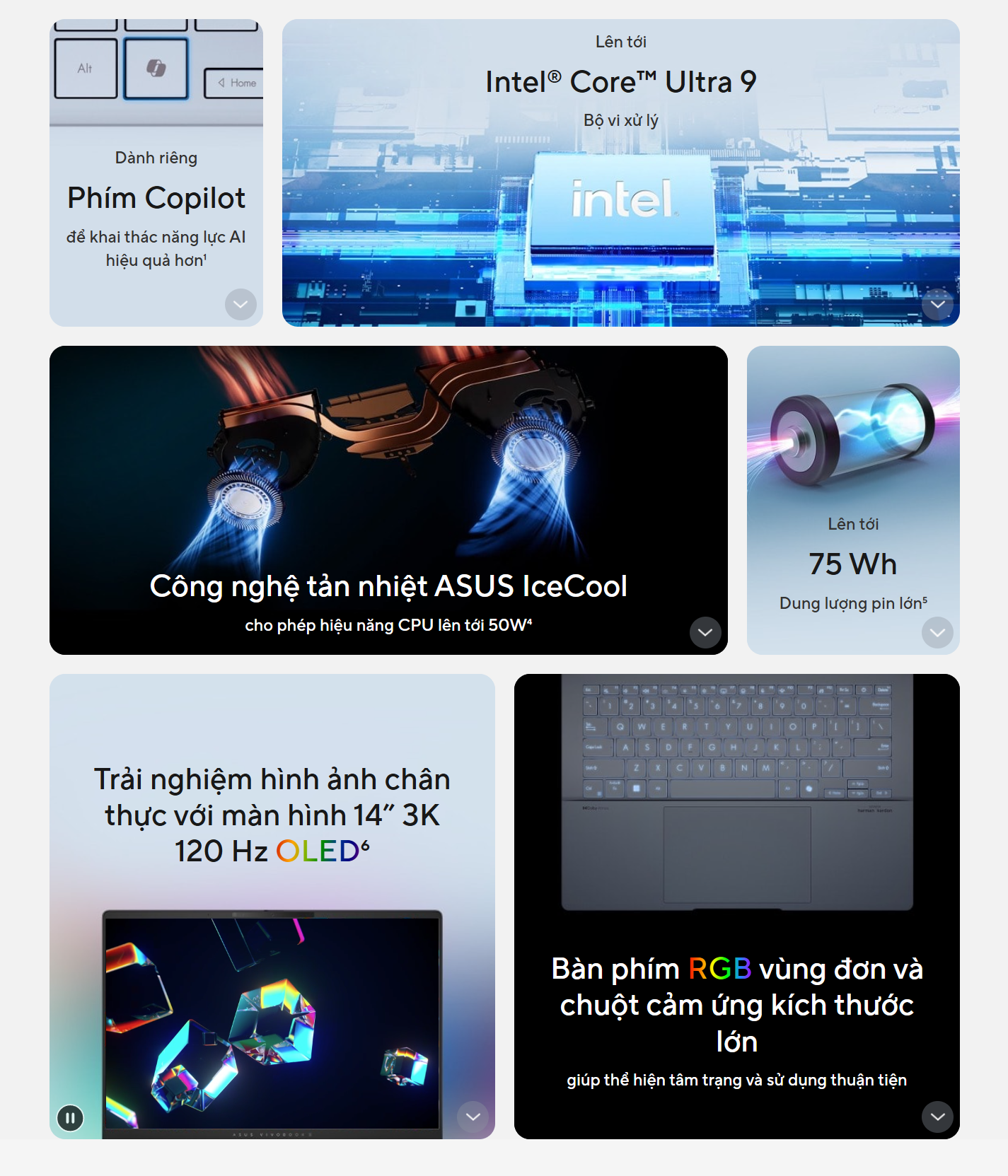 - Bàn phím và touchpad tiện dụng: Laptop được trang bị bàn phím backlit Chiclet với đèn nền RGB 1 vùng và phím Copilot, giúp bạn làm việc dễ dàng trong điều kiện thiếu sáng và truy cập nhanh vào các tính năng AI của Windows.