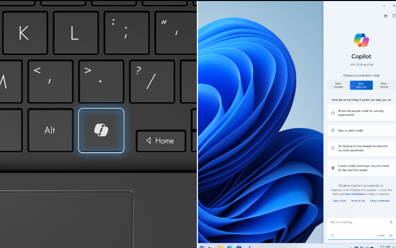 - Bàn phím và touchpad tiện dụng: Laptop được trang bị bàn phím backlit Chiclet với đèn nền RGB 1 vùng và phím Copilot, giúp bạn làm việc dễ dàng trong điều kiện thiếu sáng và truy cập nhanh vào các tính năng AI của Windows.