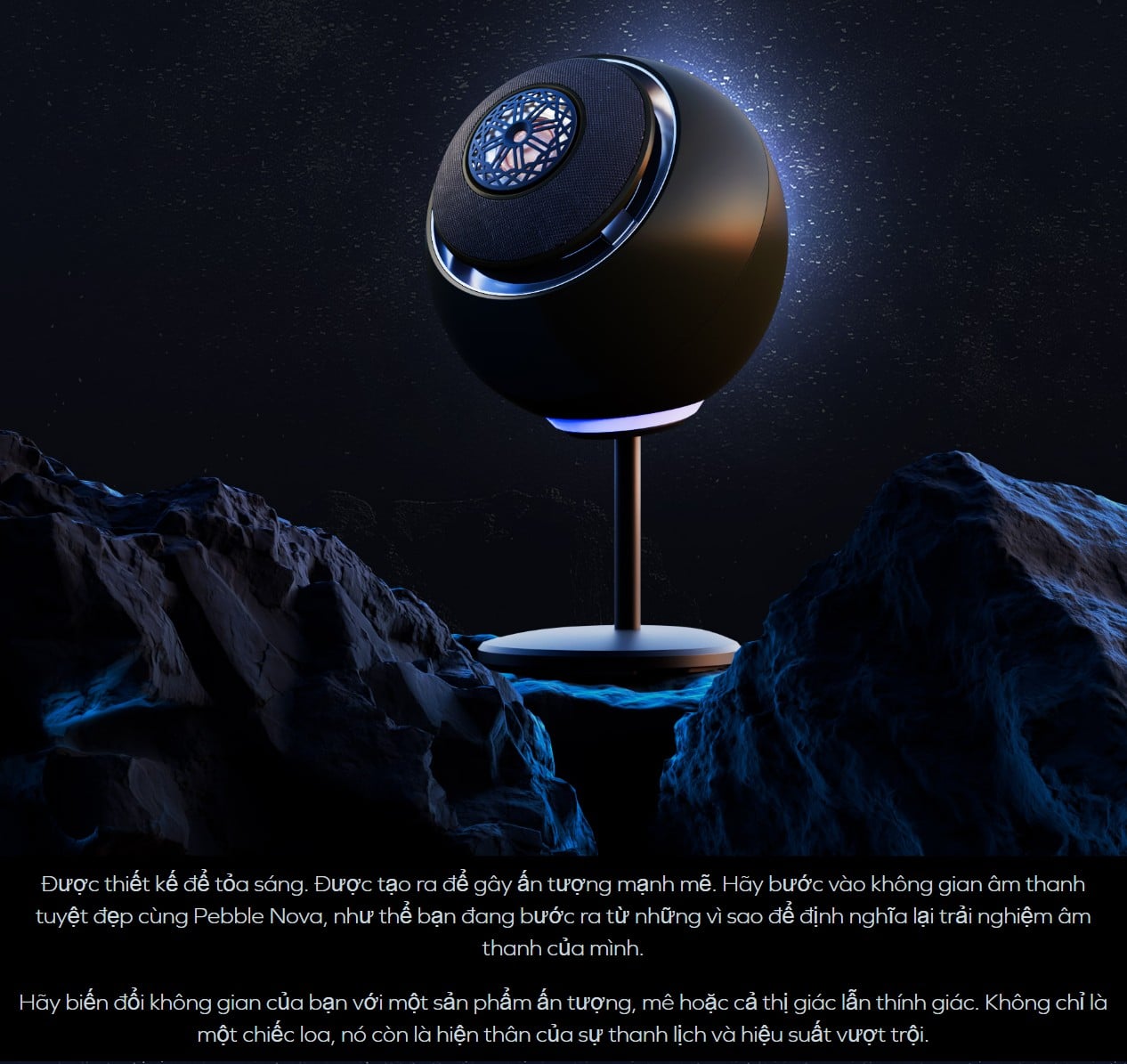 Pebble Nova được trang bị cấu hình trình điều khiển đồng trục độc đáo, kết hợp giữa một driver 3 inch và một tweeter 1 inch trên cùng một trục, đi kèm với Passive Radiator riêng biệt cho mỗi loa. Thiết kế này giúp tối ưu hóa sự hòa quyện của âm thanh, mang lại dải tần rộng từ 55Hz–20,000Hz với độ chi tiết cao và âm bass trầm ấm, rõ ràng, đạt tỷ lệ Tín hiệu/Nhiễu (SNR) ấn tượng ≥ 93 dB.