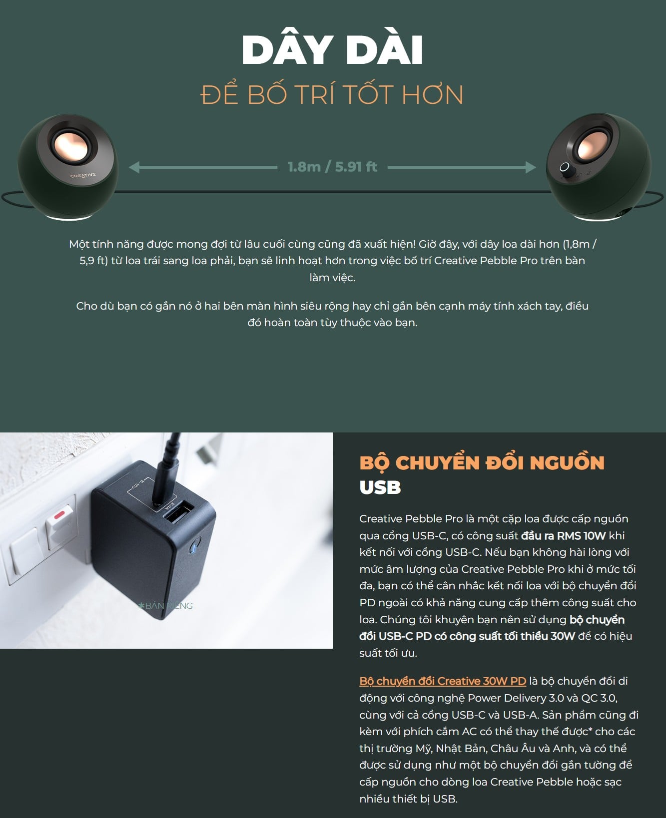 - Công suất (RMS): Lên đến 30W RMS (Với Adapter PD 30W)