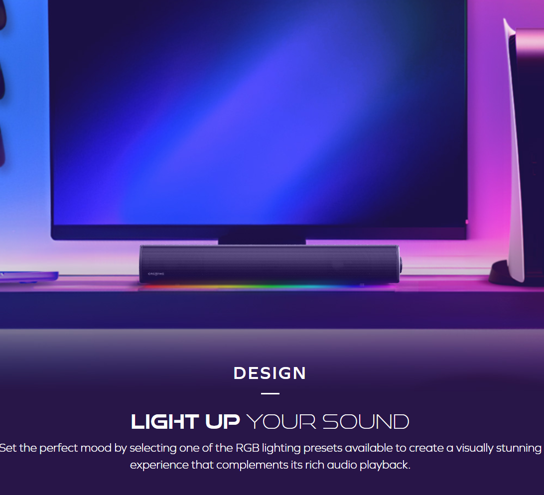 - Thiết kế nhỏ gọn, tinh tế: Soundbar một mảnh, kích thước 510 x 102.7 x 82.6mm, dễ dàng đặt gọn gàng trên bàn làm việc, tối ưu hóa không gian cho PC, laptop hay TV.
