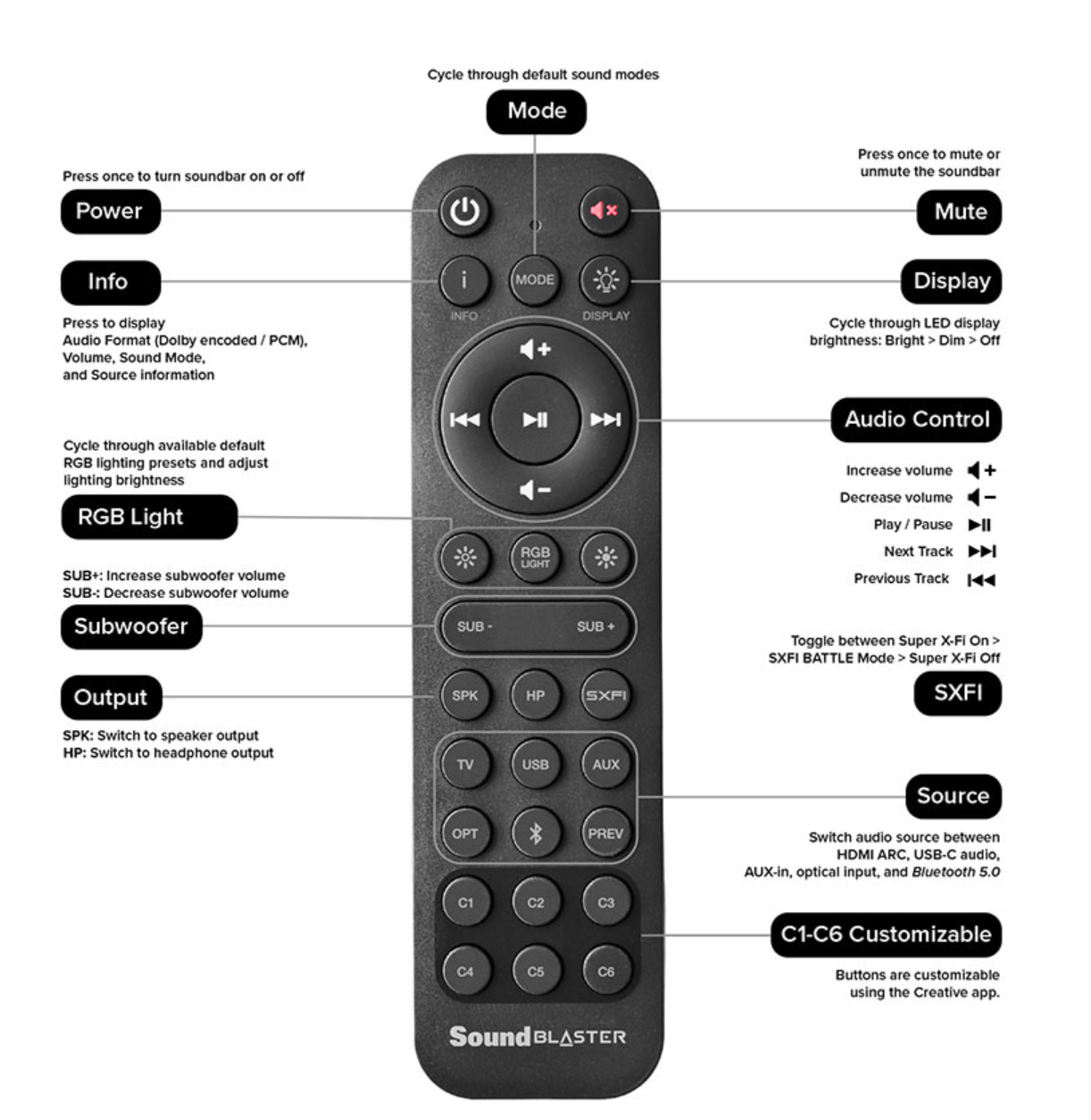 - Công nghệ âm thanh: Super X-Fi, Sound Blaster Acoustic Engine, SXFI BATTLE Mode, Scout Mode, Giải mã Dolby Digital