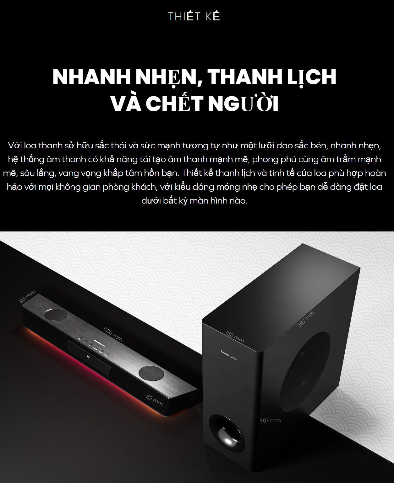 - Người dùng yêu thích thiết kế: Mong muốn một chiếc soundbar có thiết kế hiện đại, mỏng gọn và hệ thống đèn RGB cá tính.