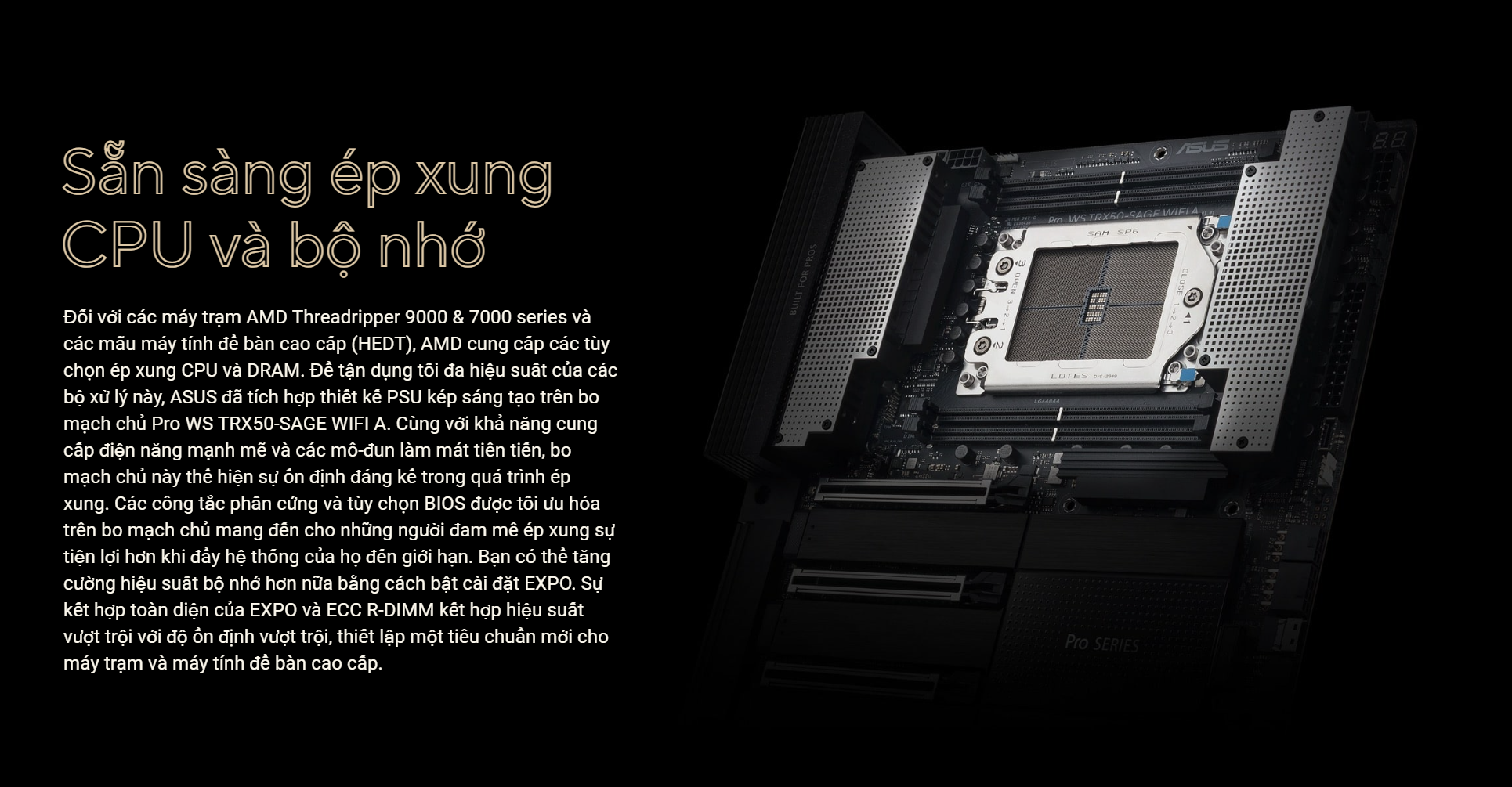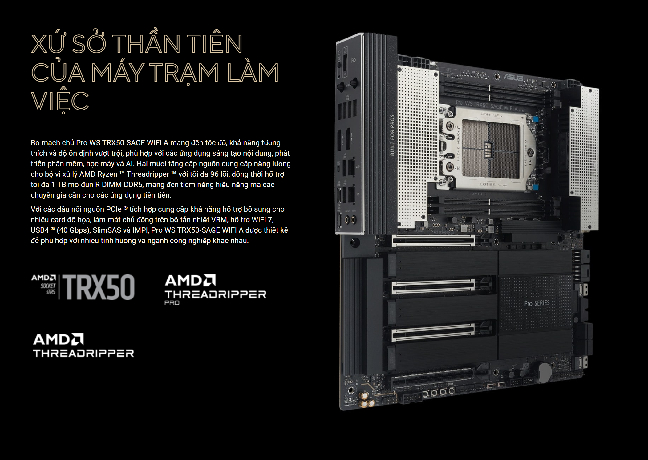 ASUS Pro WS TRX50-SAGE WIFI A: Hiệu năng không giới hạn, ổn định tuyệt đối. Nền tảng vững chắc để xây dựng cỗ máy sáng tạo và AI đỉnh cao - BP STORE