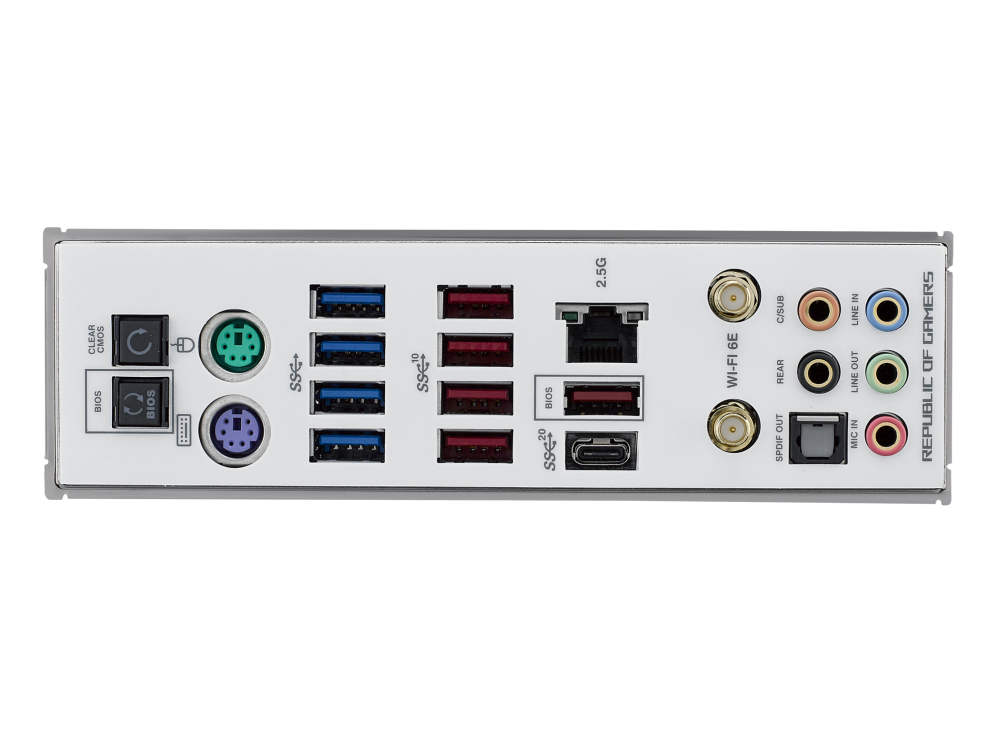 Cổng USB sau: 1x USB 3.2 Gen 2x2 (Type-C), 5x USB 3.2 Gen 2, 4x USB 3.2 Gen 1.