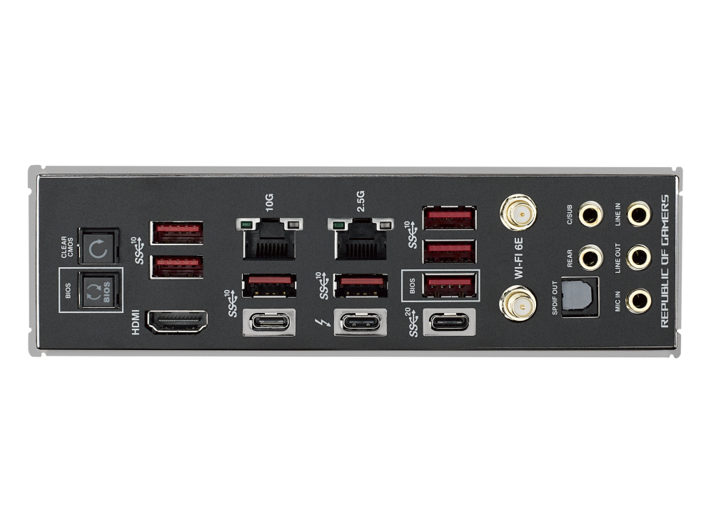 Cổng sau: 1x Thunderbolt™ 4, 1x USB 3.2 Gen 2x2 Type-C, 8x USB 10Gbps Type-A.