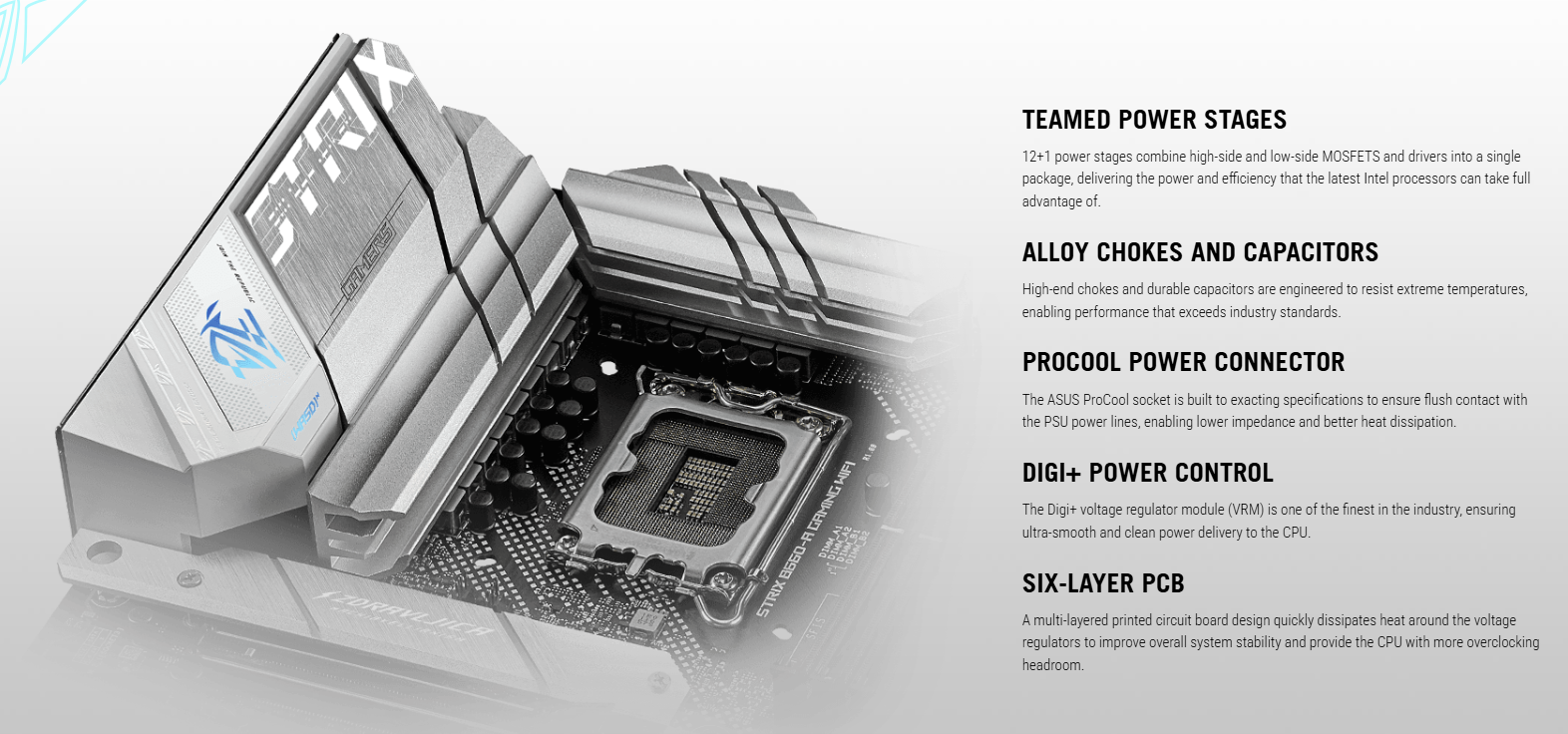Để vận hành ổn định các dòng CPU Intel Core i5, i7 và thậm chí là i9, B660-A được trang bị dàn VRM 12+1 Power Stages cùng các linh kiện cao cấp. Điều này đảm bảo nguồn điện cung cấp cho CPU luôn sạch và ổn định, giúp duy trì mức xung nhịp cao trong thời gian dài.