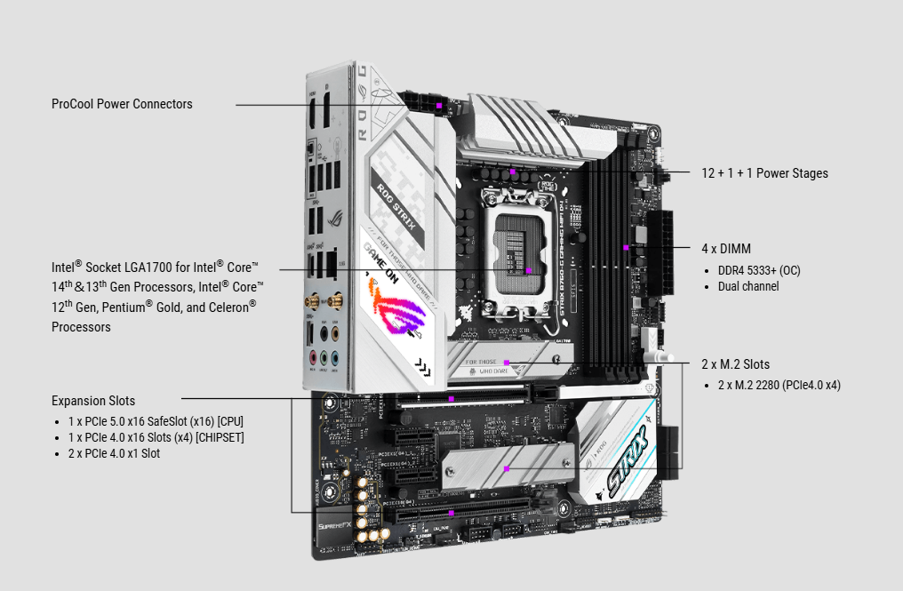Mua ngay Mainboard Asus ROG STRIX B760-G GAMING WIFI D4 tại BP STORE để nâng cấp dàn PC của bạn lên một tầm cao mới, bứt phá mọi giới hạn.