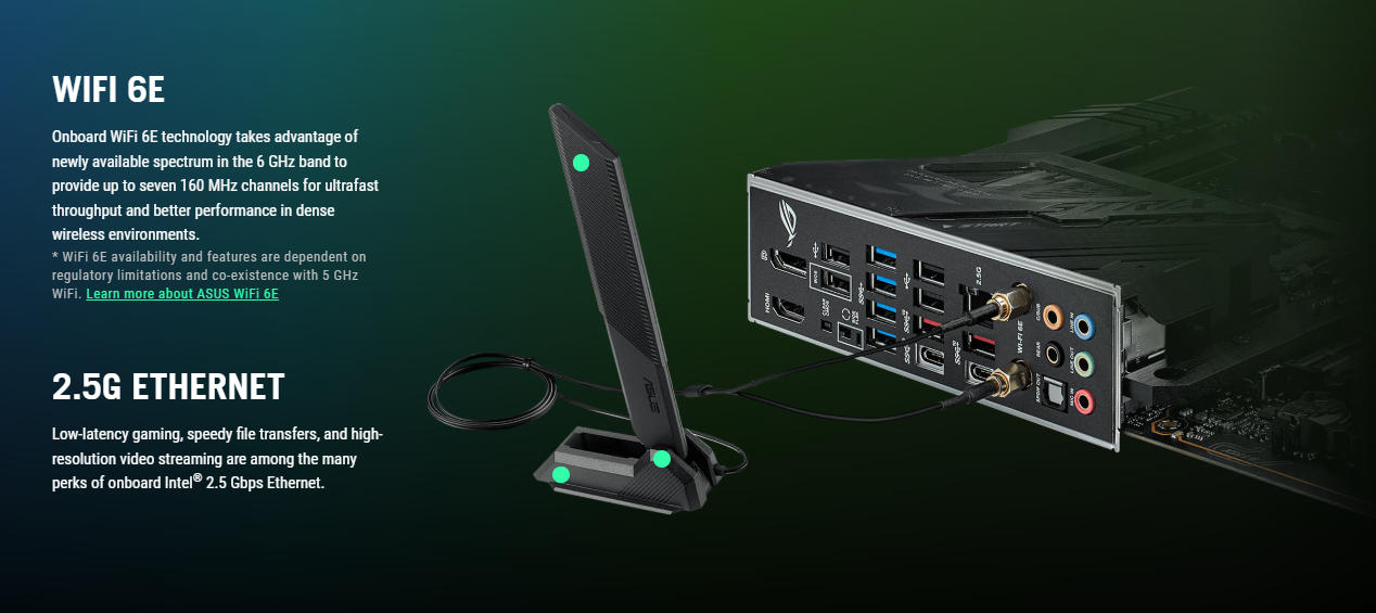 WiFi 6E & 2.5Gb Ethernet: Tận dụng băng tần 6GHz để chơi game không dây không độ trễ và truyền tải dữ liệu siêu tốc.